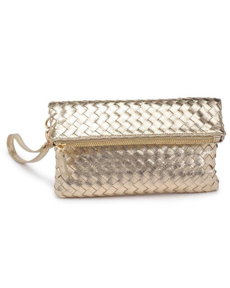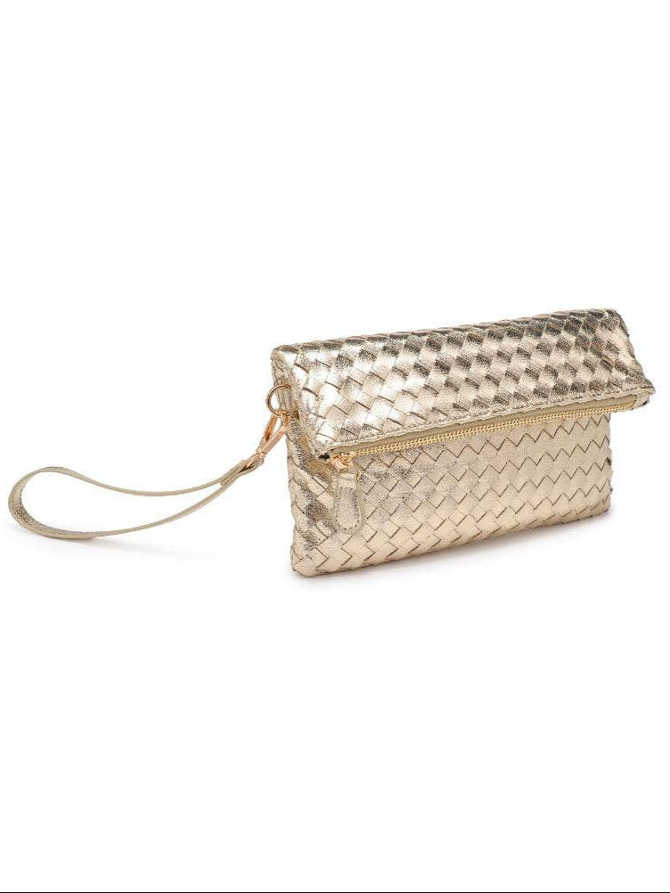 This vegan leather beauty features a chic woven design and a stylish foldover flap for that extra touch of elegance. The detachable wristlet strap makes it super convenient for when you're on the go, while the printed fabric lining and zip pocket keep your essentials neatly tucked away. Perfect for adding a little flair to your evening ensemble or just jazzing up your day-to-day look!