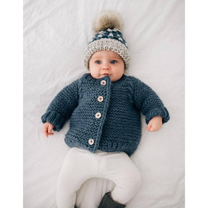 Keep your little one snug and stylish with our Garter Stitch Cardigan Sweater for Baby & Toddler. Hand-knit in a beautiful slate blue yarn, this thick and soft sweater features a classic garter stitch that adds timeless charm to any outfit. The cable trim raglan sleeves and wooden buttons enhance its traditional appeal, making it a wonderful piece for cooler days.