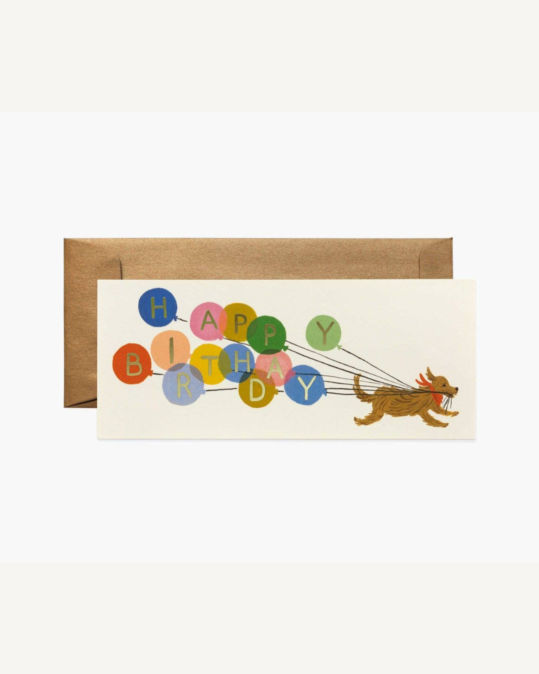 Celebrate their special day with this extra-long birthday card featuring a playful pup and shimmering gold foil accents. Perfectly sized for enclosing cash or a check, it’s a thoughtful way to add a personal touch to any birthday gift.