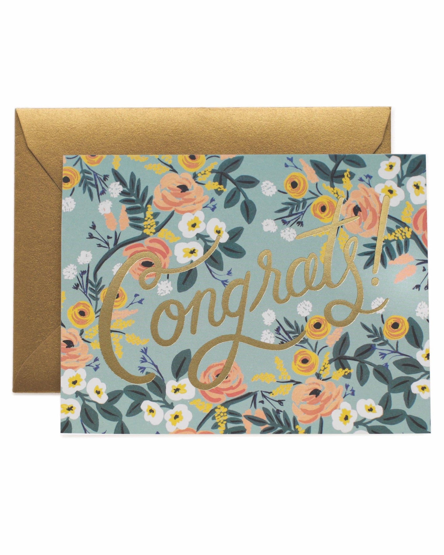 Celebrate their big moment with this charming card, adorned with delicate blue meadow florals and shimmering gold accents. Perfect for graduations, engagements, new jobs, or any milestone worth toasting. A blank interior offers space for your personal message of joy and encouragement.