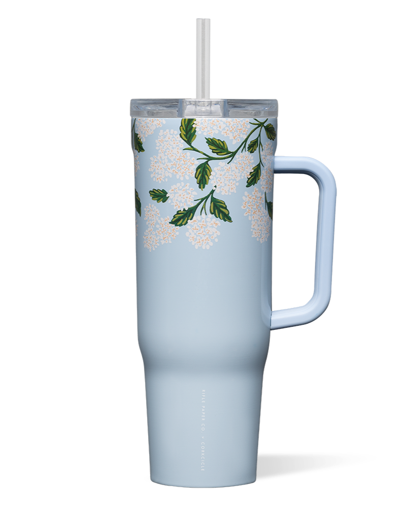 Gloss Blue Hydrangea 40oz Cruiser Tumbler - Rifle Paper Co. x Corkcicle