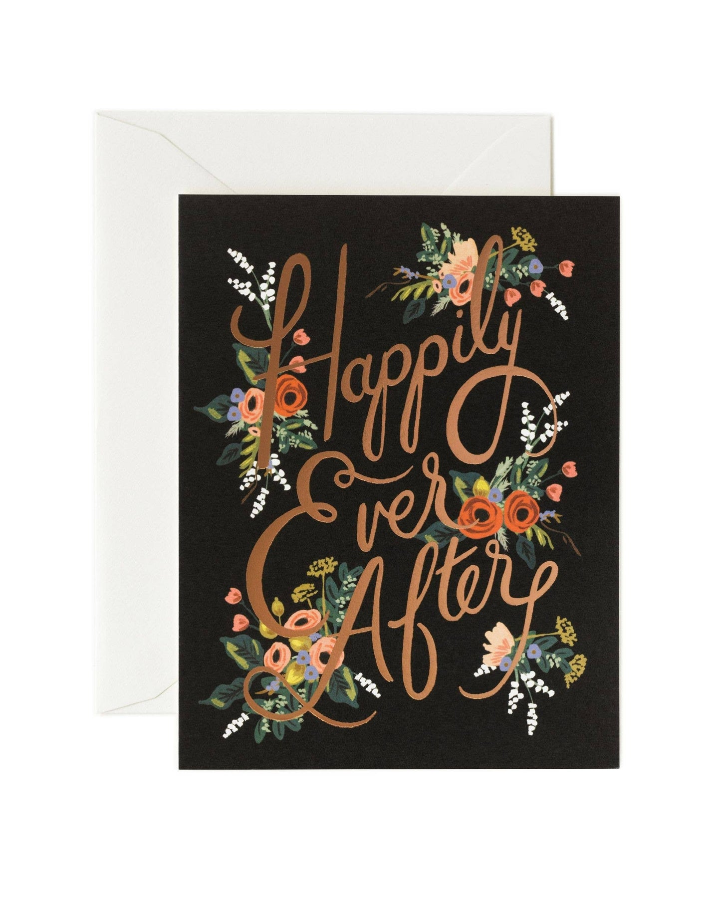 Celebrate their forever love with this elegant wedding card, adorned with timeless details and metallic gold accents. Perfect for sending best wishes to the newlyweds, this card sets the tone for a joyful future together. A blank interior provides space for your heartfelt message.