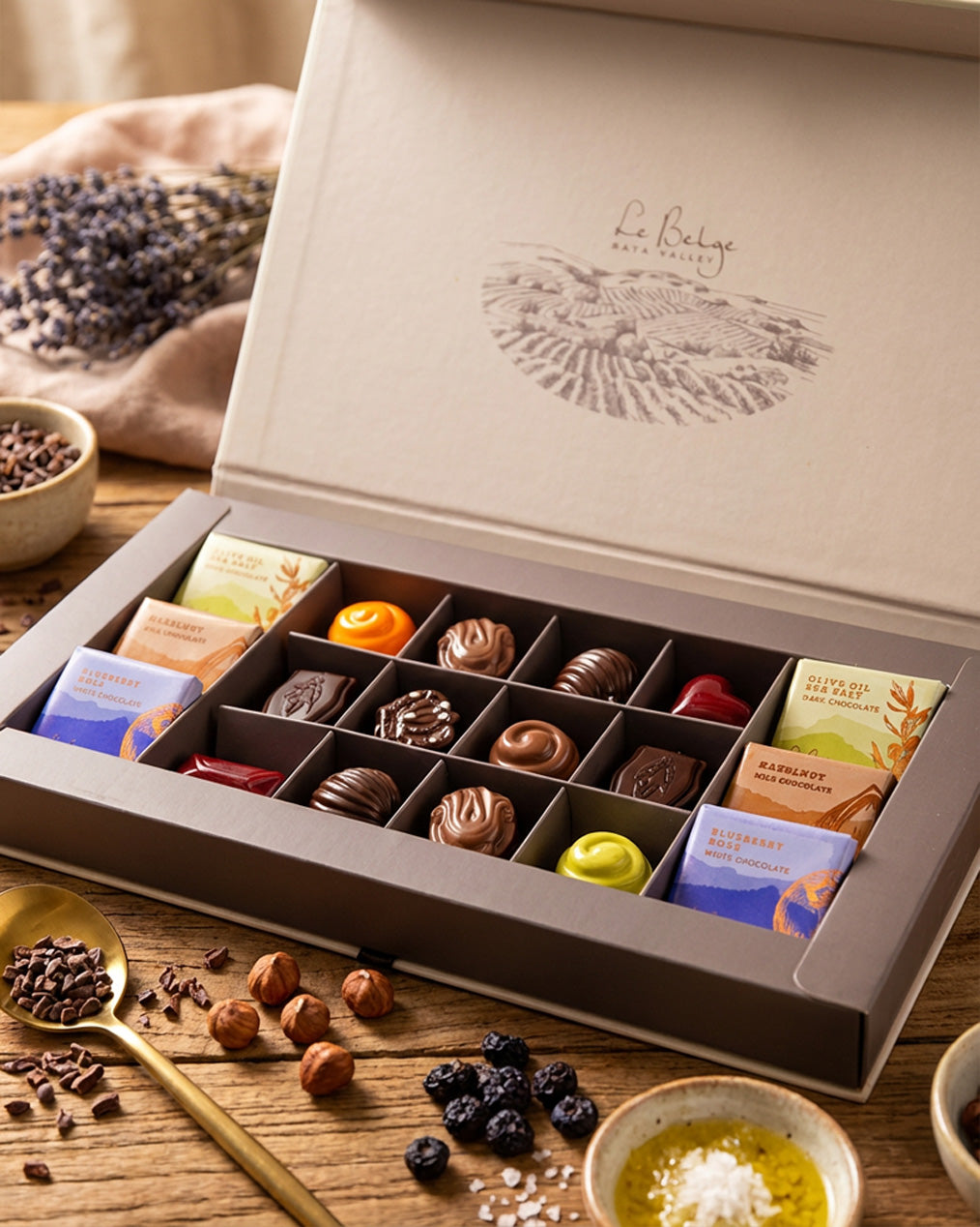 Regular price $ 58.00An elevated chocolate experience designed for true indulgence. The Le Belge Galleria Chocolate Gift Box brings together an artful assortment of handcrafted chocolate tablets and truffles, making it a stunning gift—or a well-deserved treat for yourself. Each piece is thoughtfully crafted to balance rich textures and layered flavors, offering a tasting journey that feels both luxurious and approachable.