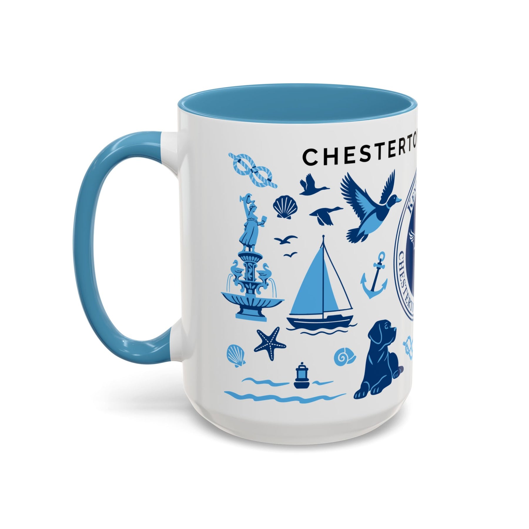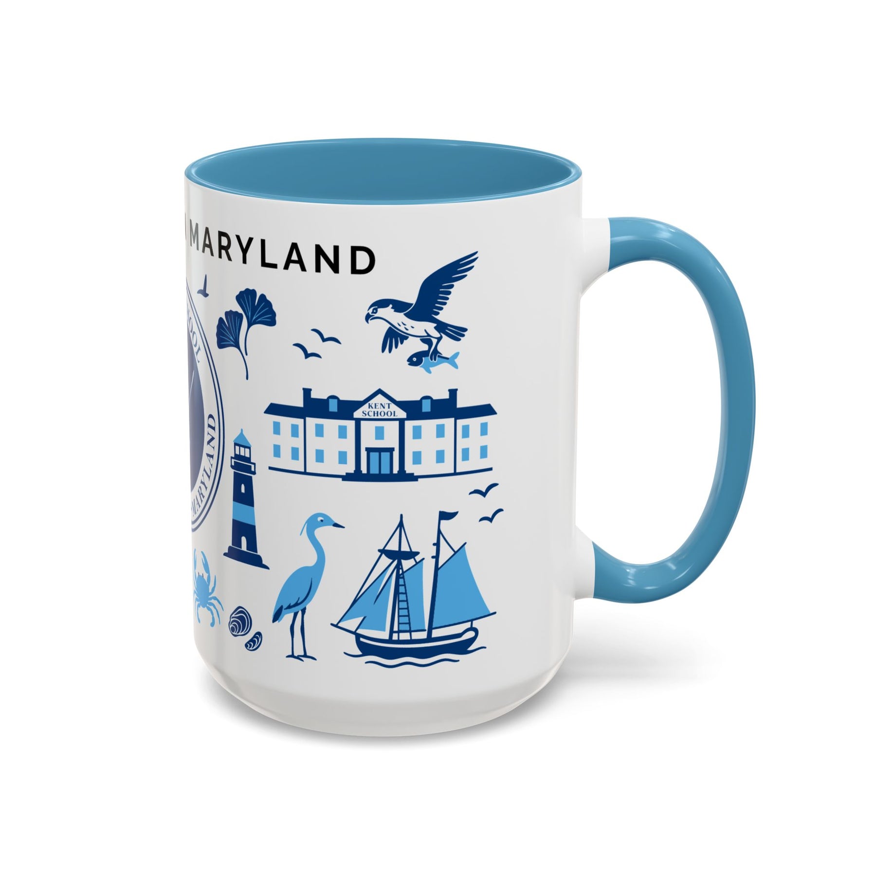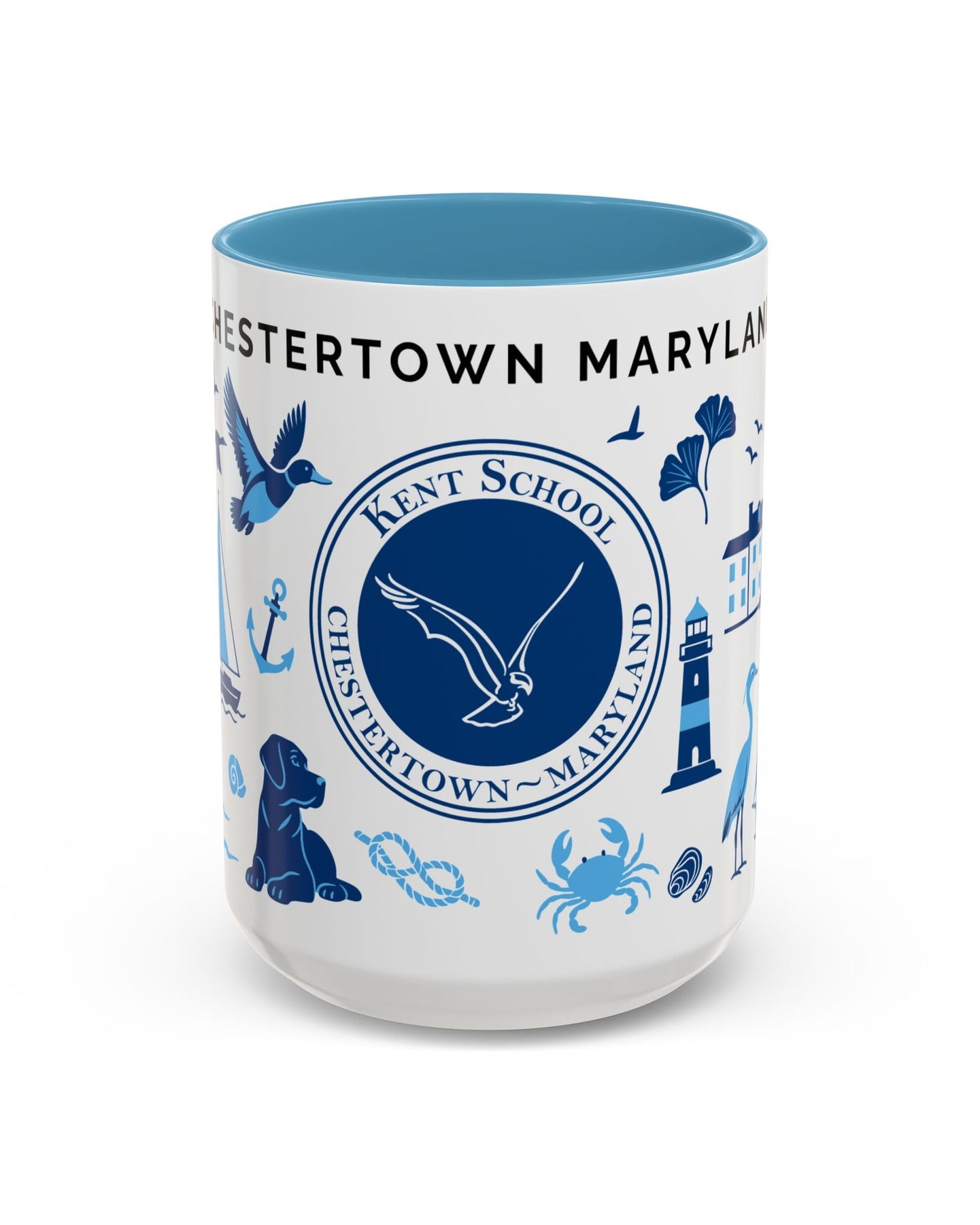 Celebrate the heart of Kent School and the charm of Chestertown, Maryland with this beautifully illustrated ceramic mug. Featuring iconic blue-toned graphics like the Kent School seal, Chesapeake Bay wildlife, sailboats, and the town’s historic landmarks. This coastal-inspired design is perfect for alumni, parents, teachers, and town locals alike. Whether you’re sipping coffee at sunrise or cozying up with tea, this mug makes every moment a little more meaningful.