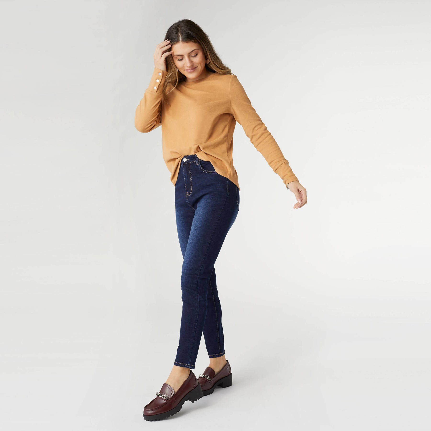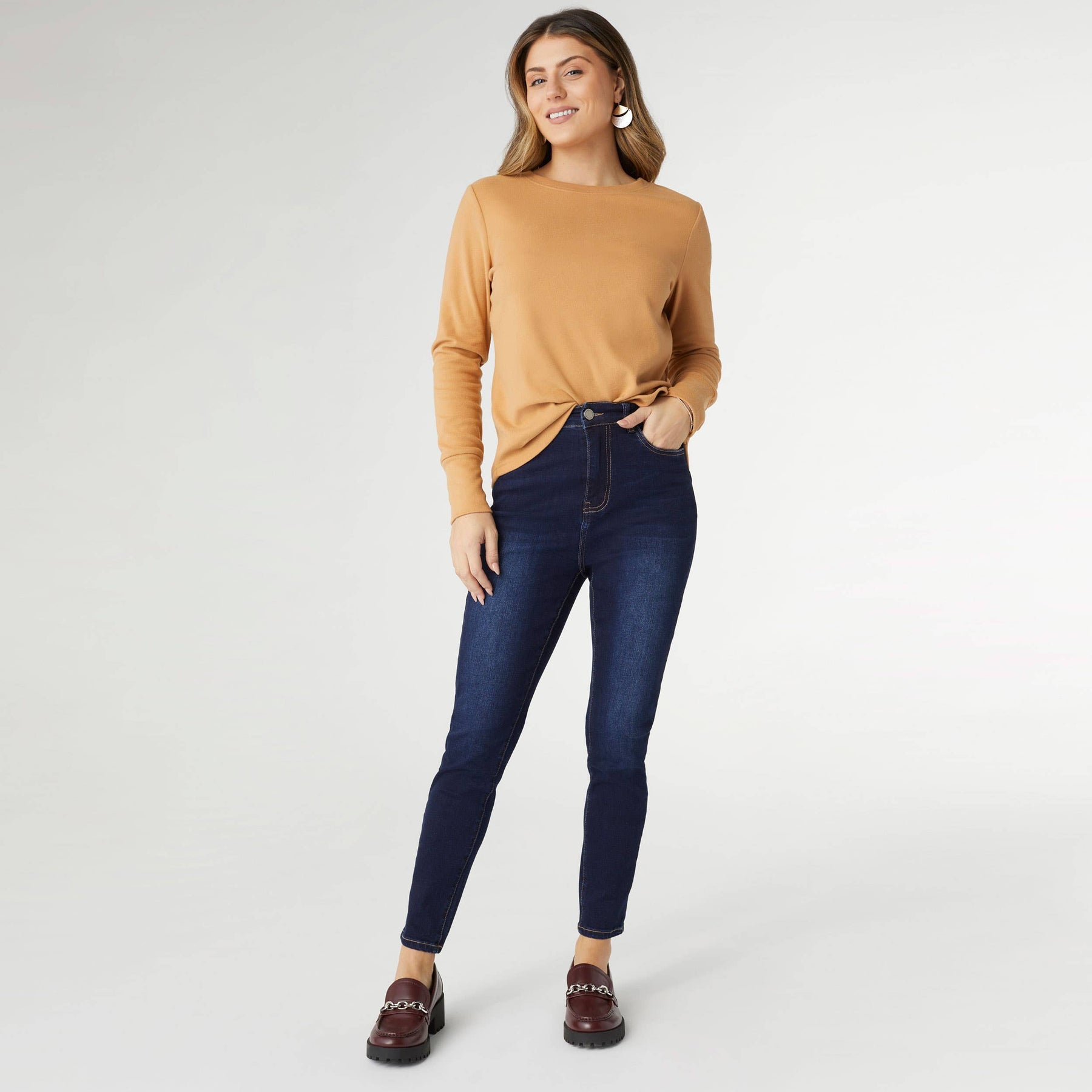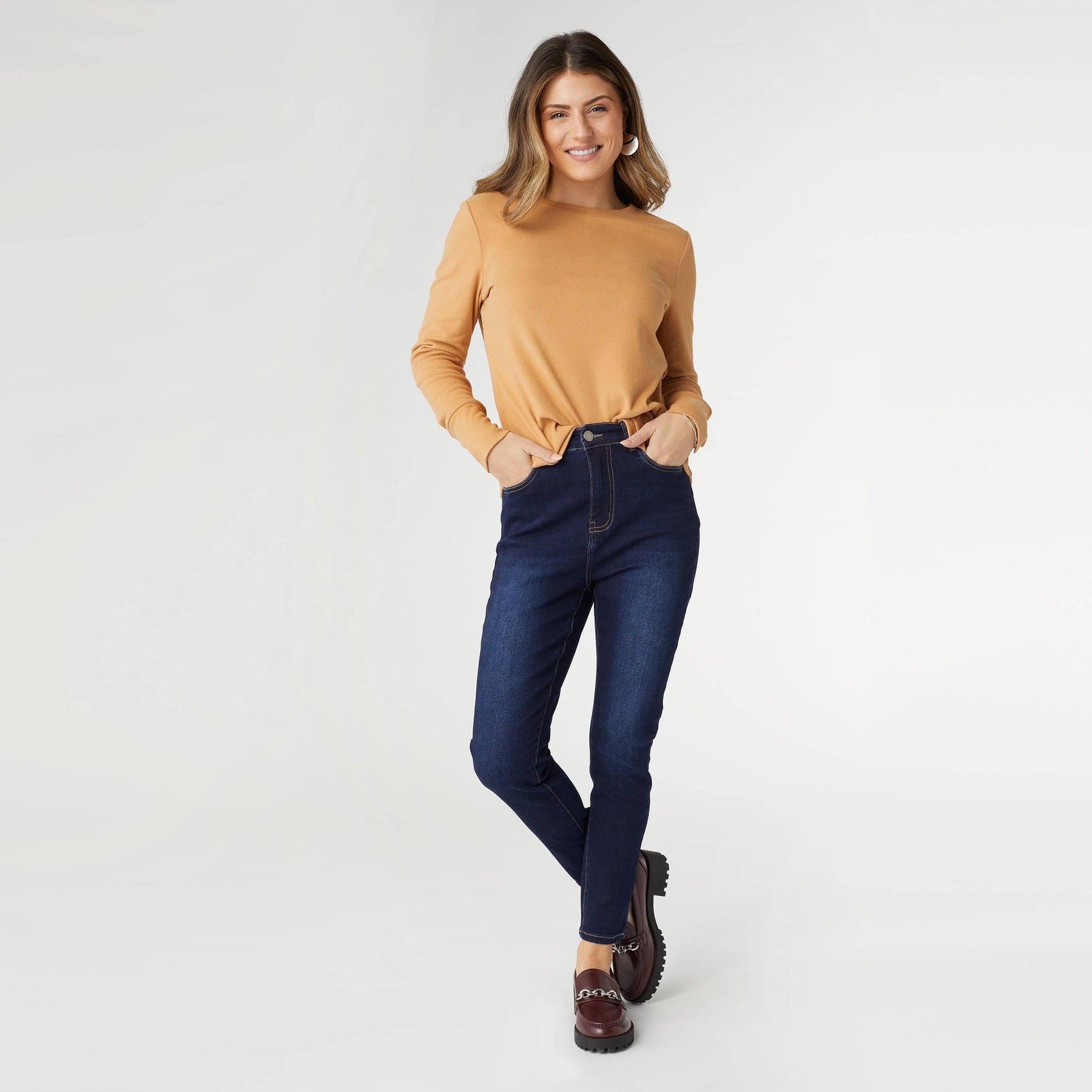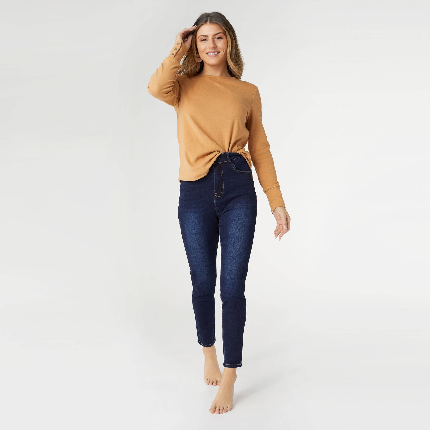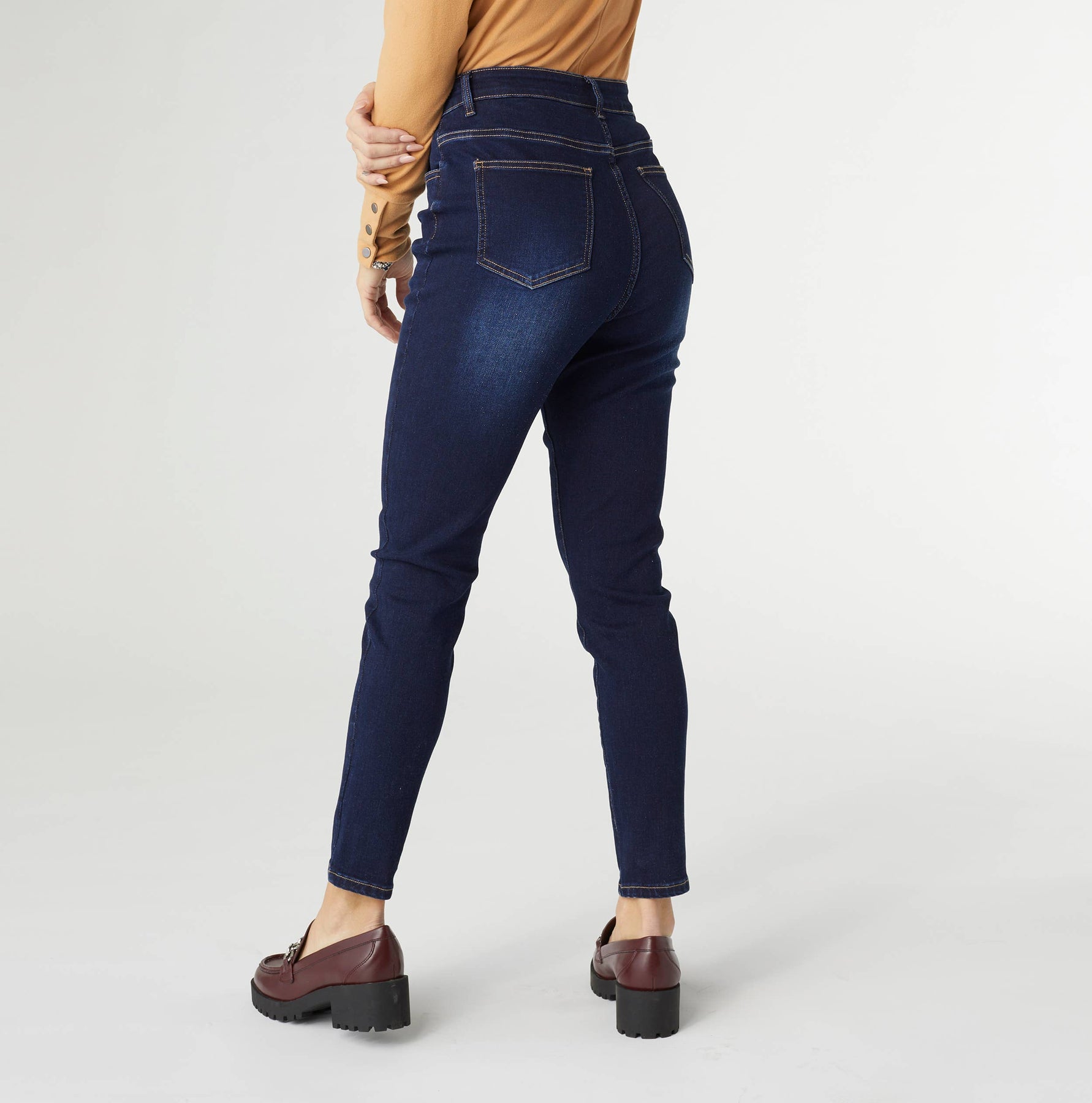 Experience ultimate comfort with our EverStretch High Rise Skinny Ankle Jeans in indigo dark denim. These jeans are designed for work, play, or lounging, making them the softest, coziest jeans you'll ever own! Crafted with a high-rise fit, they provide a flattering silhouette and a chic, modern look.
