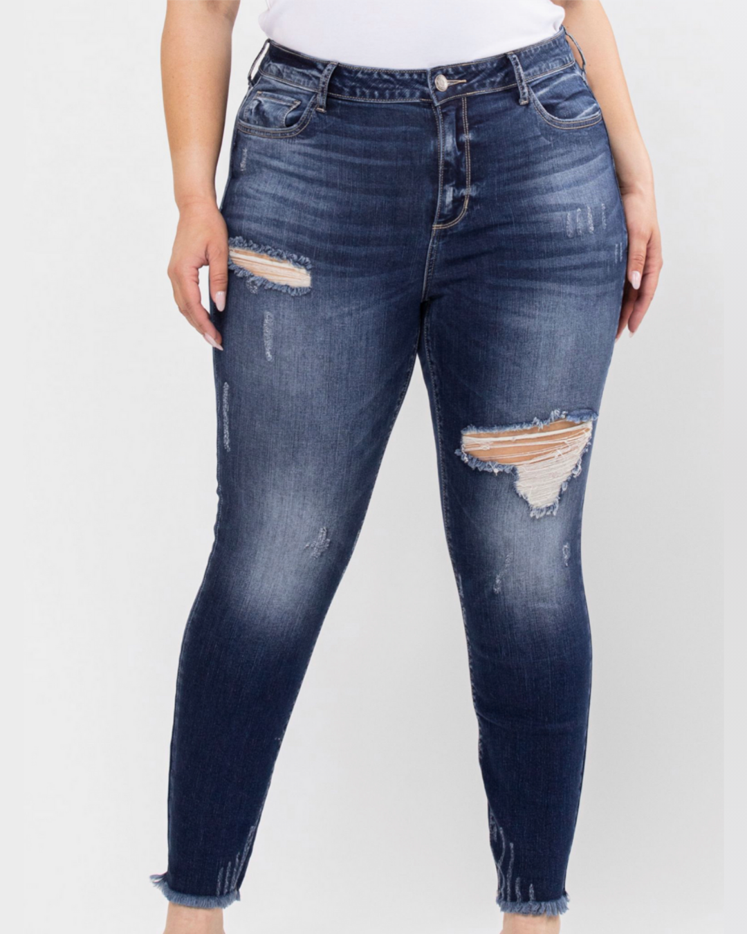 High Rise Distress Crop Skinny - Dark Denim