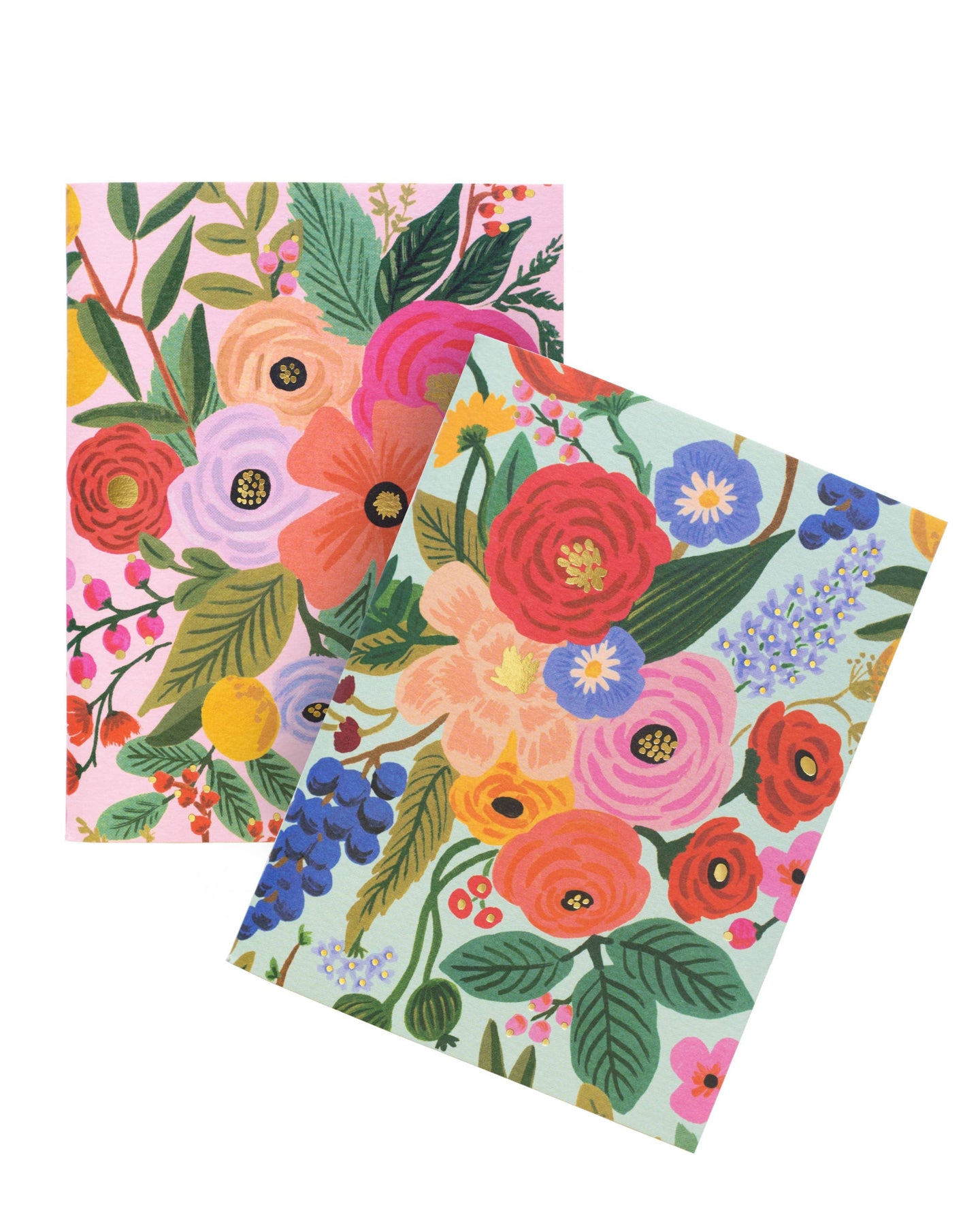 Jot down ideas on the go with the Rifle Paper Co. Garden Party Pocket Notebook Set. This set of two notebooks features full-color floral covers, metallic gold foil details, and 64 blank pages—perfect for quick notes and sketches.
