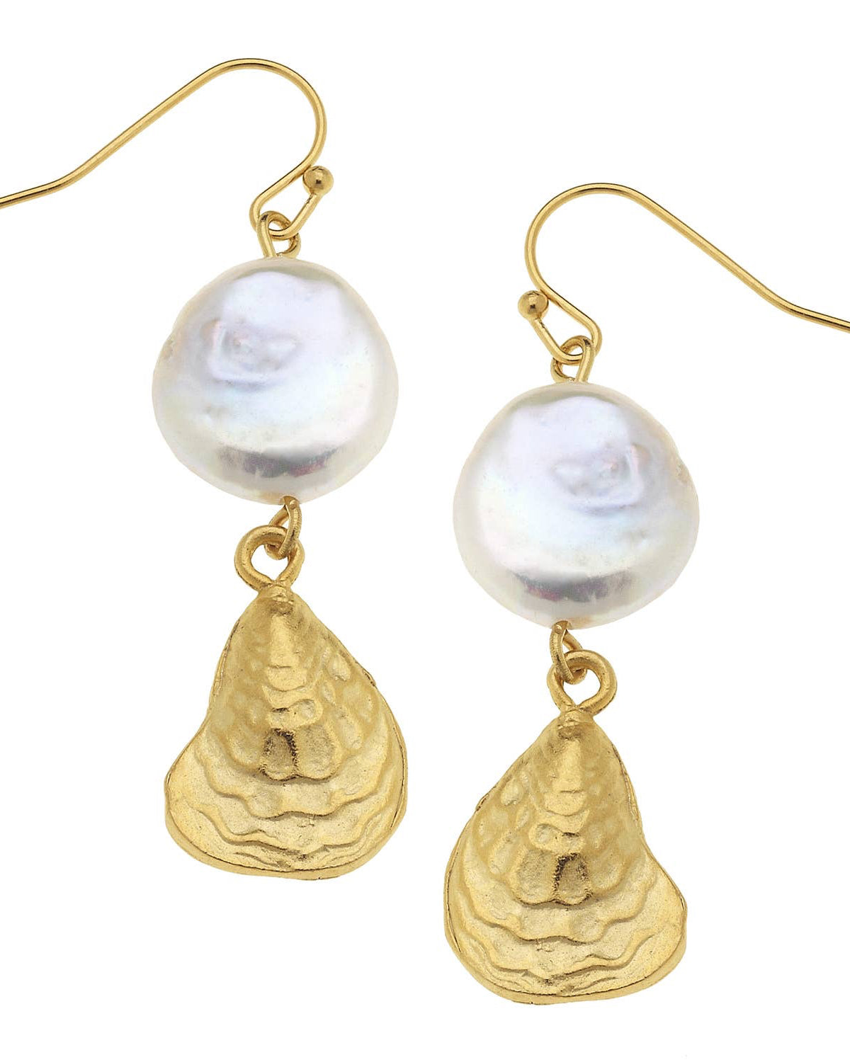 Organic elegance meets artisan craftsmanship in these oyster shell drop earrings, each one cradling a genuine freshwater pearl. With their coastal charm and rich gold plating, they’re an eye-catching nod to nature’s beauty.
