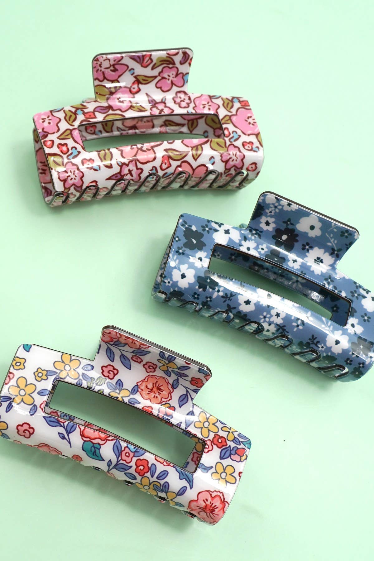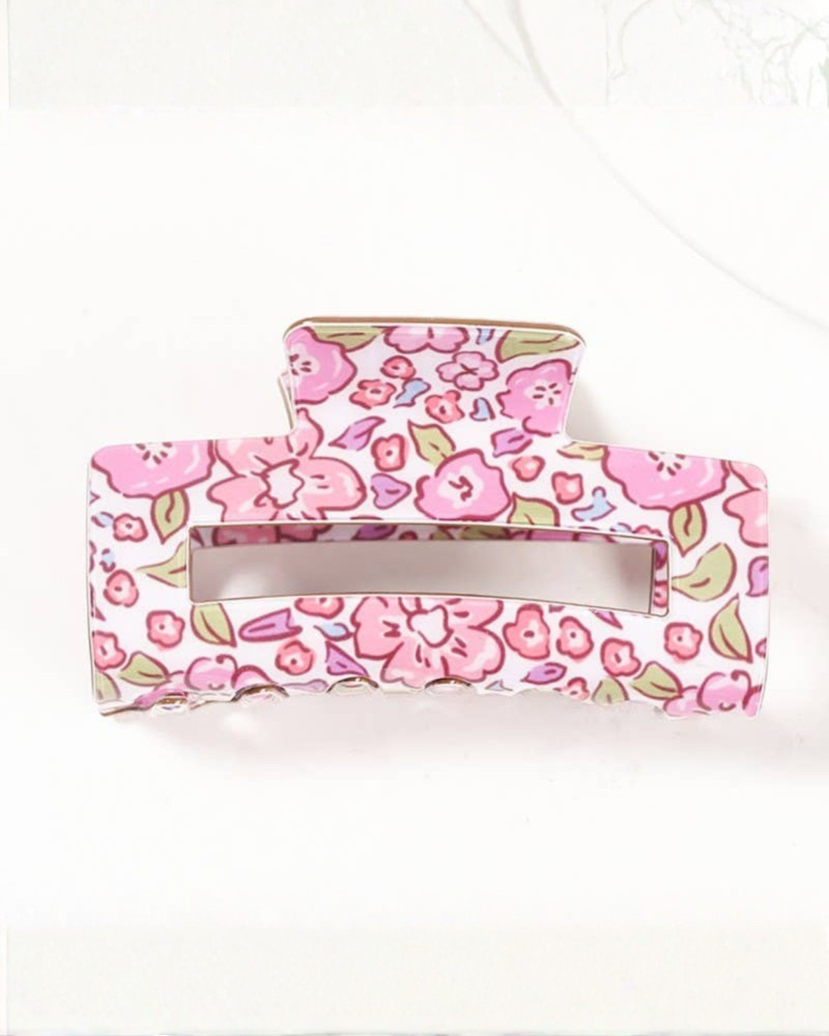Sweet and feminine, this pink floral hair claw clip adds charm to even the simplest hairstyle. Its jumbo size provides a reliable hold while the delicate print keeps the look soft and stylish.