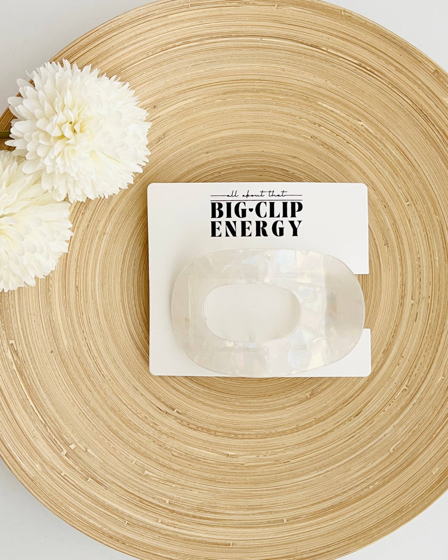 Meet the clip that’s giving major style energy. Our Big Clip Energy Flat Hair Claw in iridescent white is the ultimate blend of fashion and function. The oversized 5" flat shape makes it comfy for car rides (no headrest drama here), while the soft, pearlescent finish brings a dreamy vintage-boho vibe to any look. It’s a must-have for thick hair, messy buns, or just keeping it chic and simple.