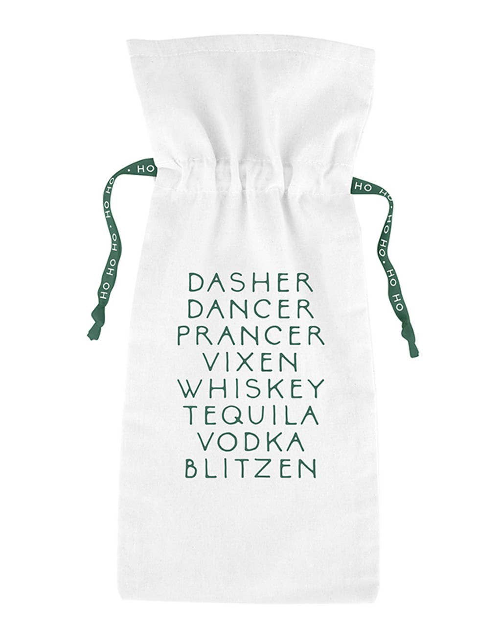 Add a playful twist to your next bottle gift with this cotton wine bag, printed with cheeky holiday flair. A standout pick for the host with the most.