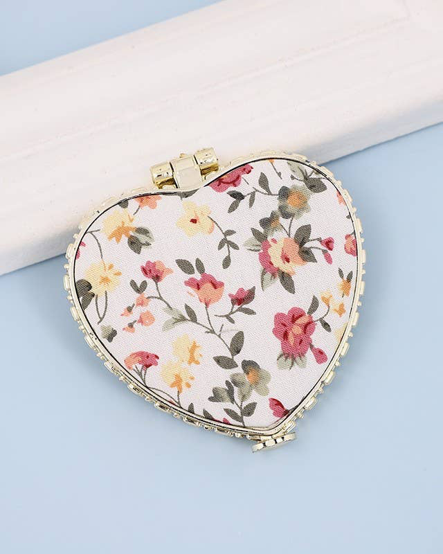 Floral Handheld Travel Mirror - Off White