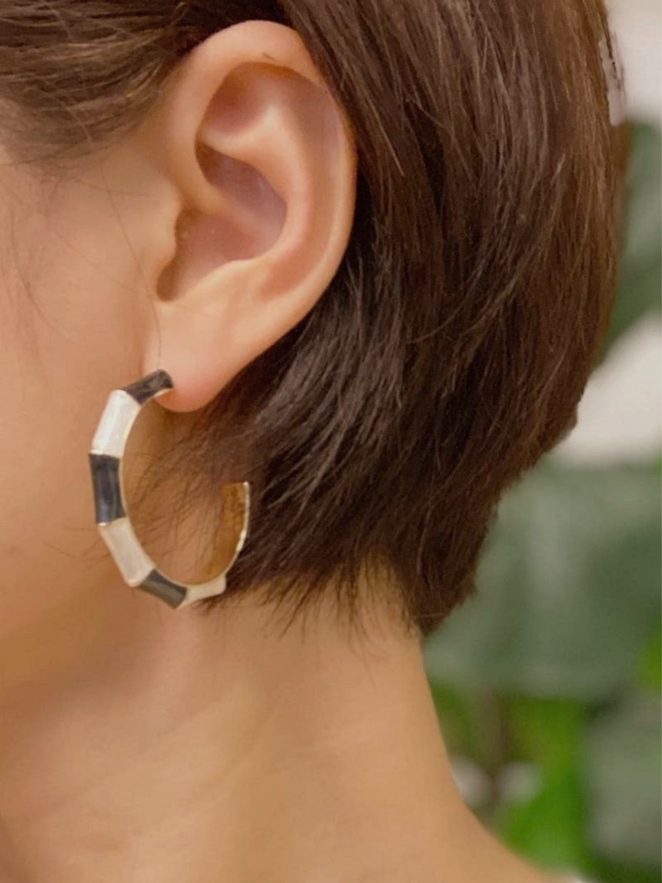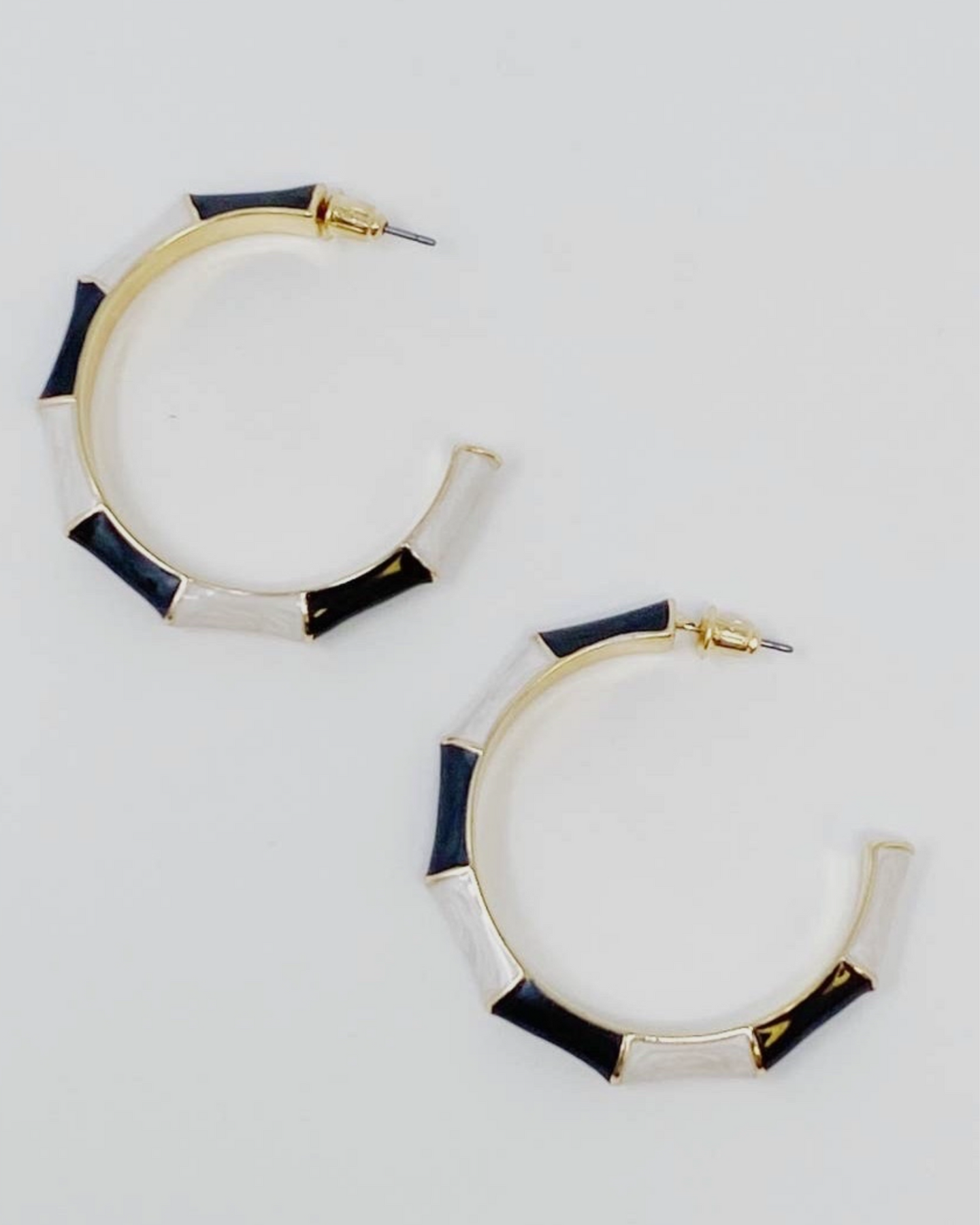 Perfect everyday size bamboo style earring in black and white color block.