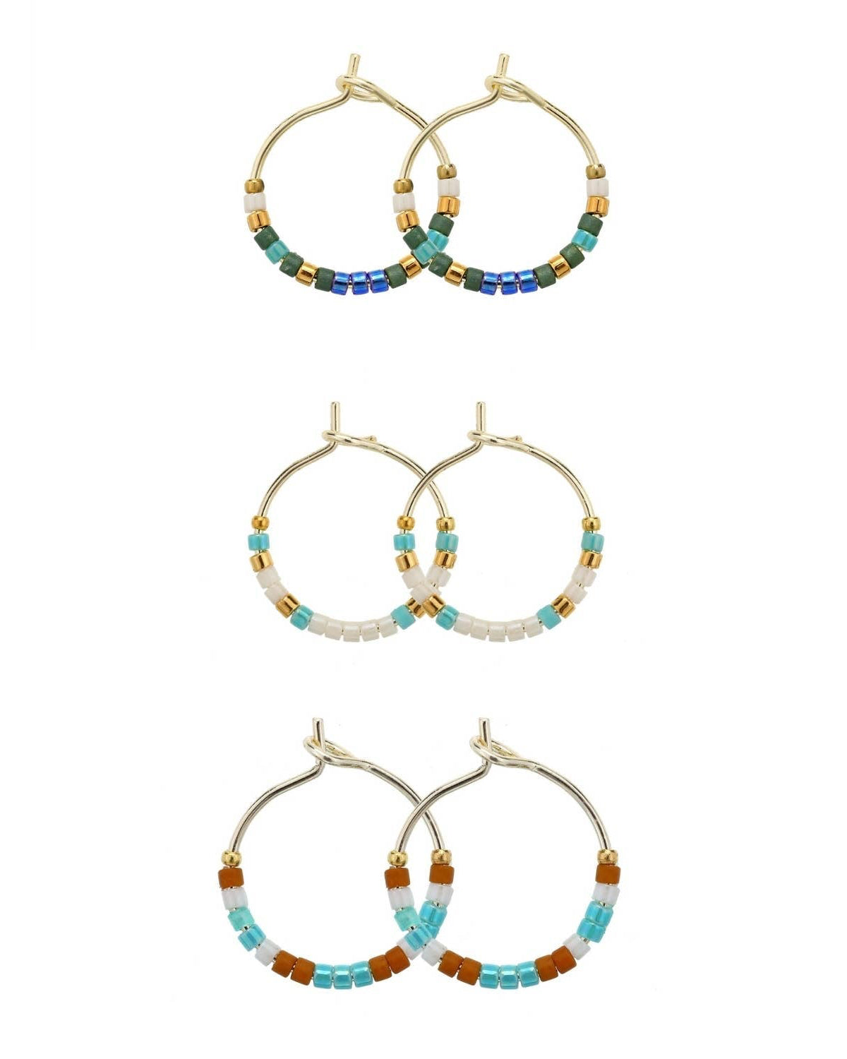 Cool-toned and coastal, these beaded hoops blend soft blues and aquas for a refreshing splash of color. Crafted with Miyuki Delica beads and designed for all-day comfort, they’re as light as they are lovely.