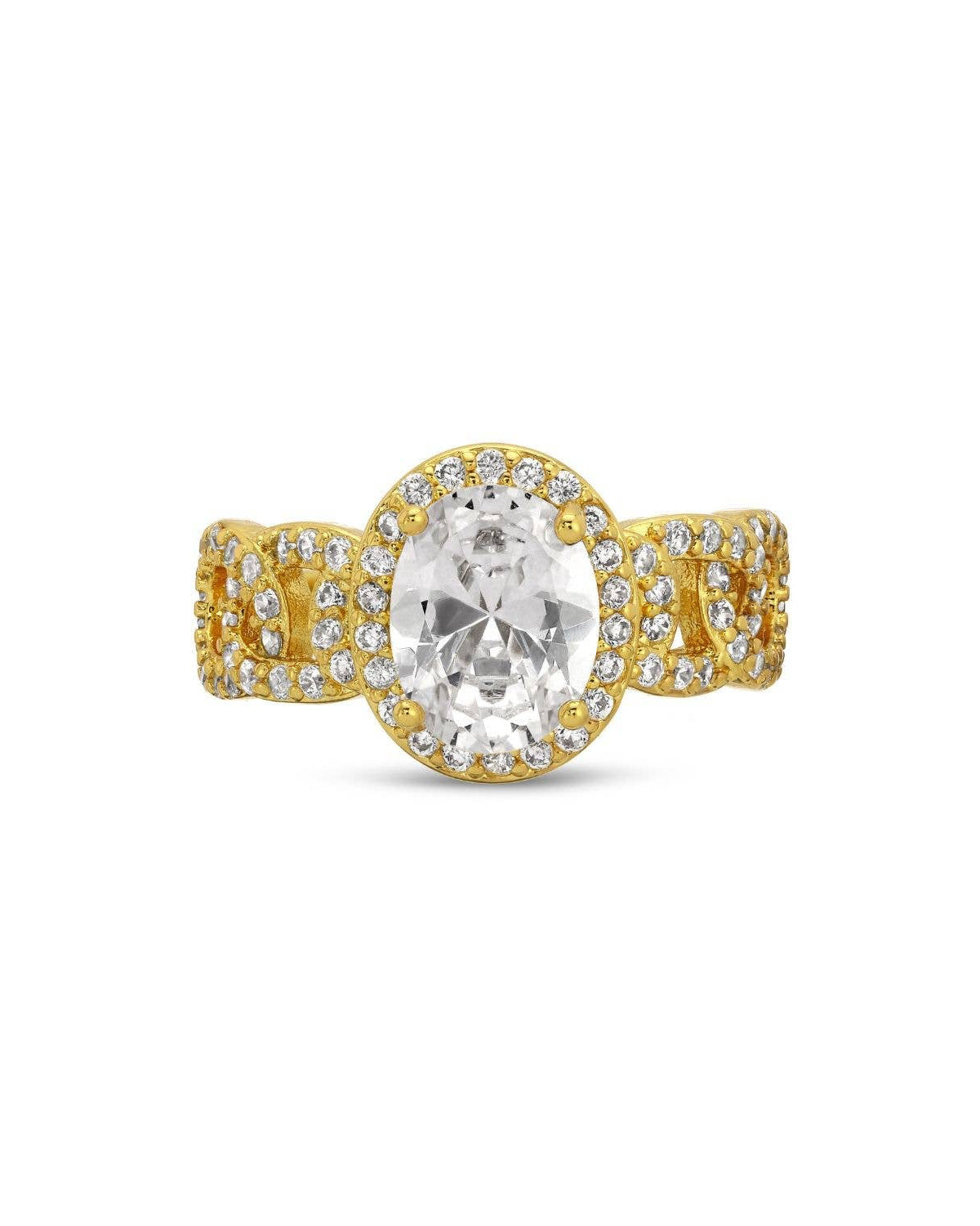 Make a dazzling statement that’s impossible to miss. The Bold Glitzy Adjustable Ring features an oval-shaped cubic zirconia that delivers maximum sparkle with a modern, glamorous edge. Finished in 18k gold plating and designed with an adjustable band, it’s made for comfort, confidence, and standout style—whether worn solo or stacked.