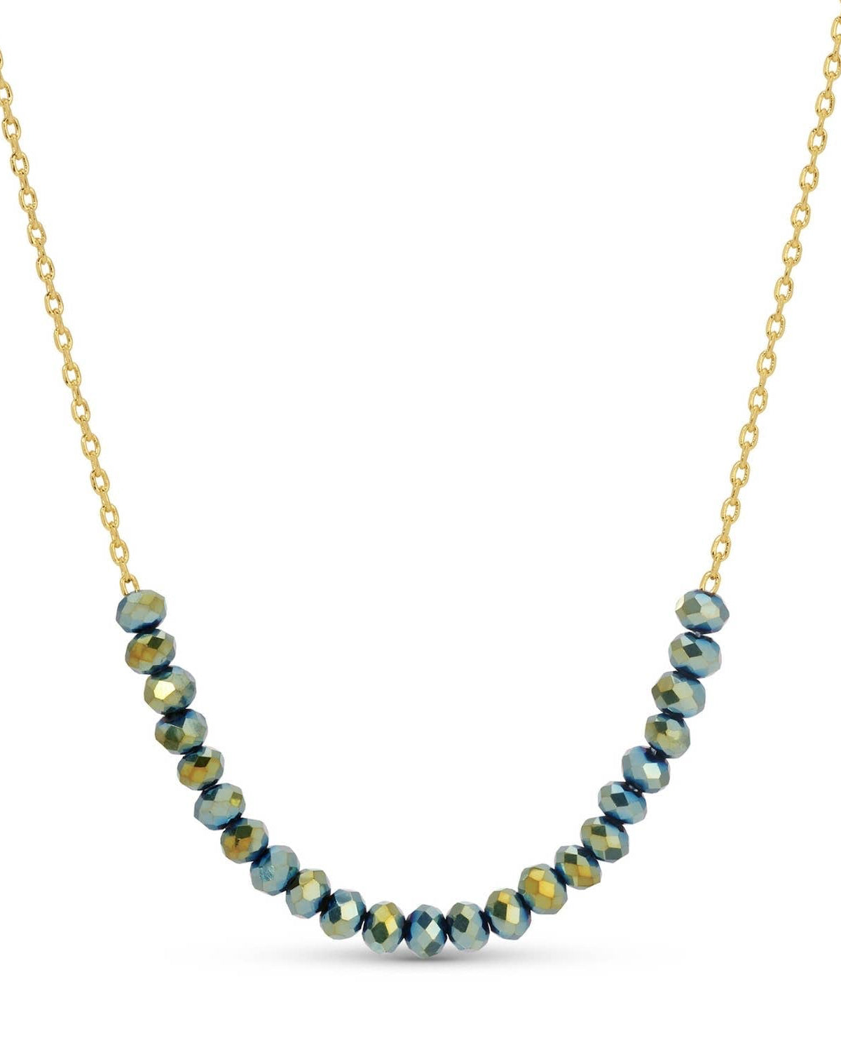 Bring a whisper of color to your neckline with this crystal-accented necklace. Featuring a single strand of green glass crystals, it’s a subtle way to shimmer—whether worn solo or layered for extra flair.