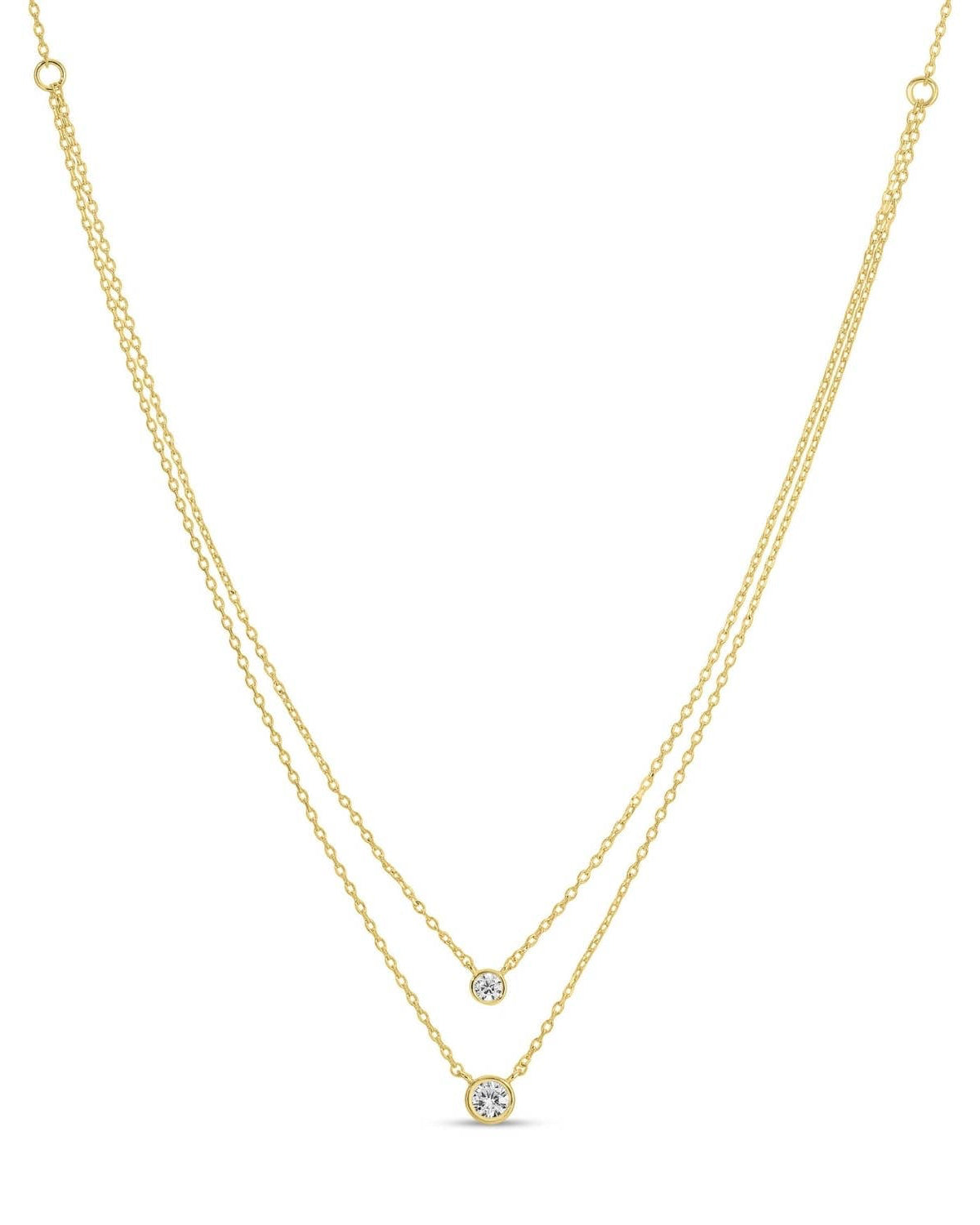 Double the layers, double the sparkle. This necklace features two framed cubic zirconia pendants in a delicate, stacked design that catches the light in the prettiest way. It’s an easy “put-together” piece that elevates everything from tees to date-night looks.