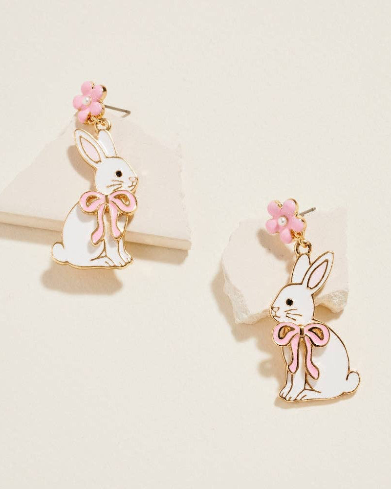 Dangle earrings with bunny and bow design