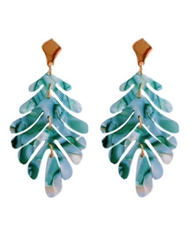 Tropical charm meets breezy sophistication in these lightweight palm leaf earrings. Made from custom die-cut interlocking acrylic beads, they’re completely weightless yet full of personality. With a 2” drop and post-back closure, they’re an effortless way to bring resort-ready style to your look. Try them with a tan open-knit sweater and white denim for sunset dinners or weekend getaways.