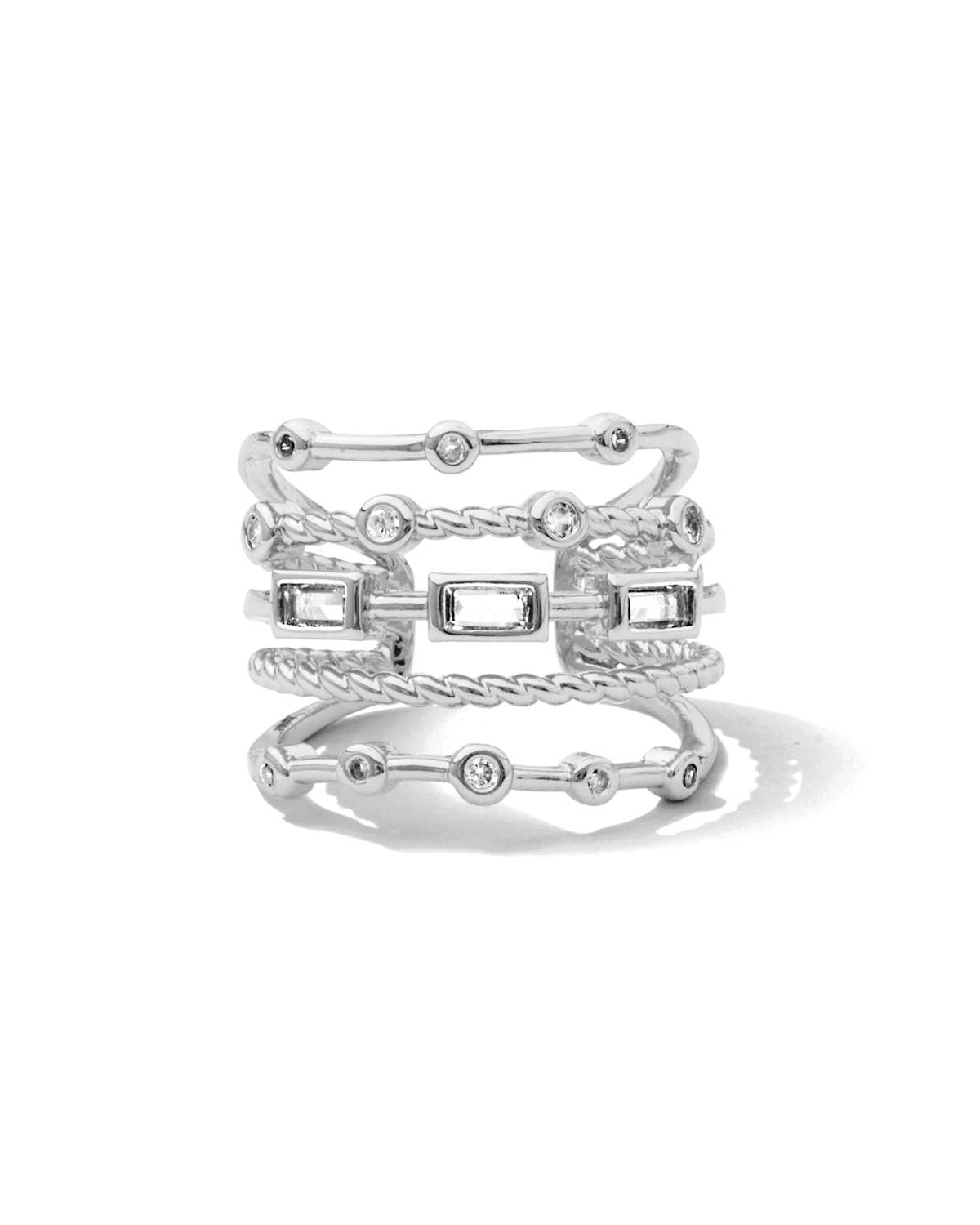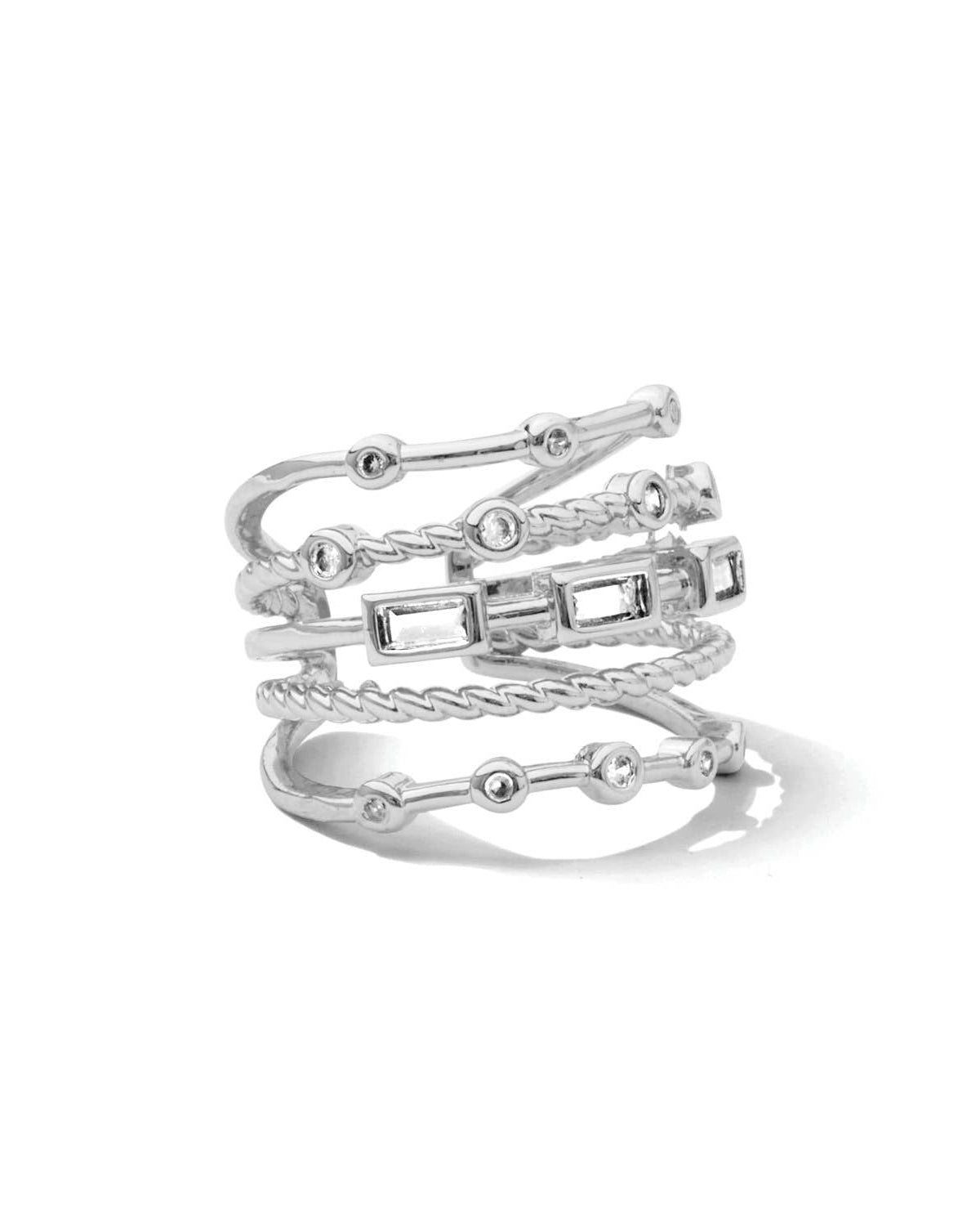 Perfect for adding a touch of glam to any outfit, this silver statement ring is an effortlessly chic, stackable essentialthat stands out whether worn solo or layered.