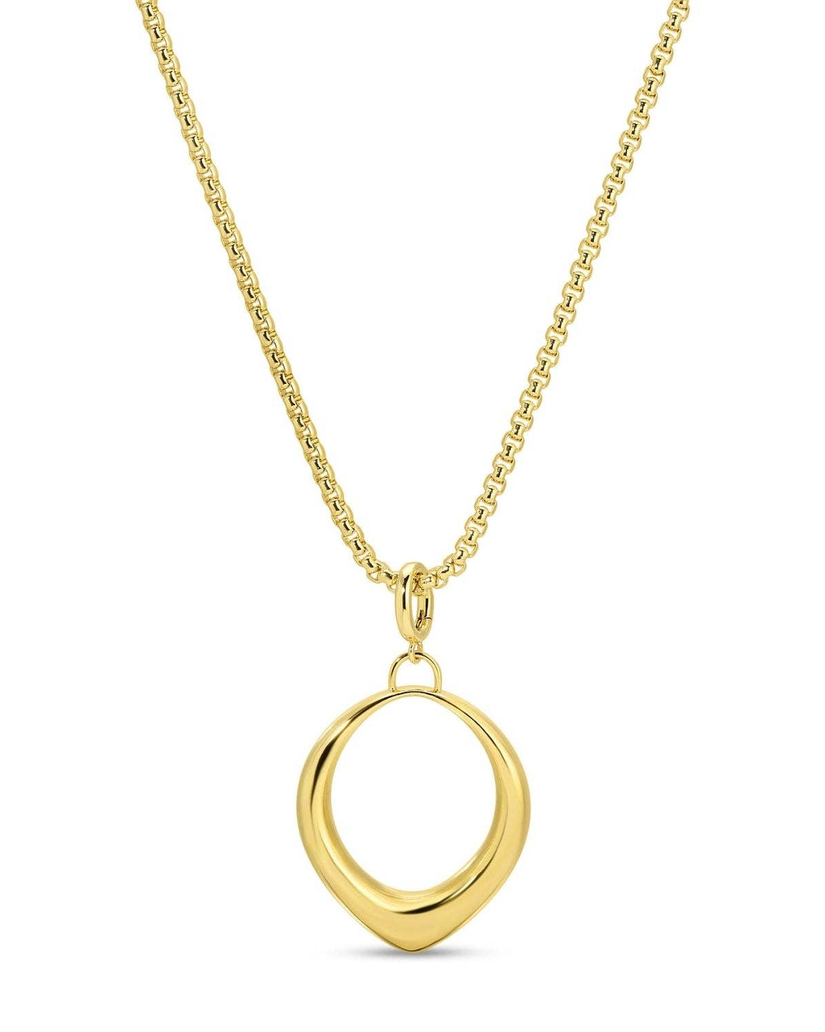 This statement piece features a bold open teardrop pendant on a thick, rounded chain. Wear it long for a dramatic look or double it up for a chic, layered twist—either way, it’s a showstopper.