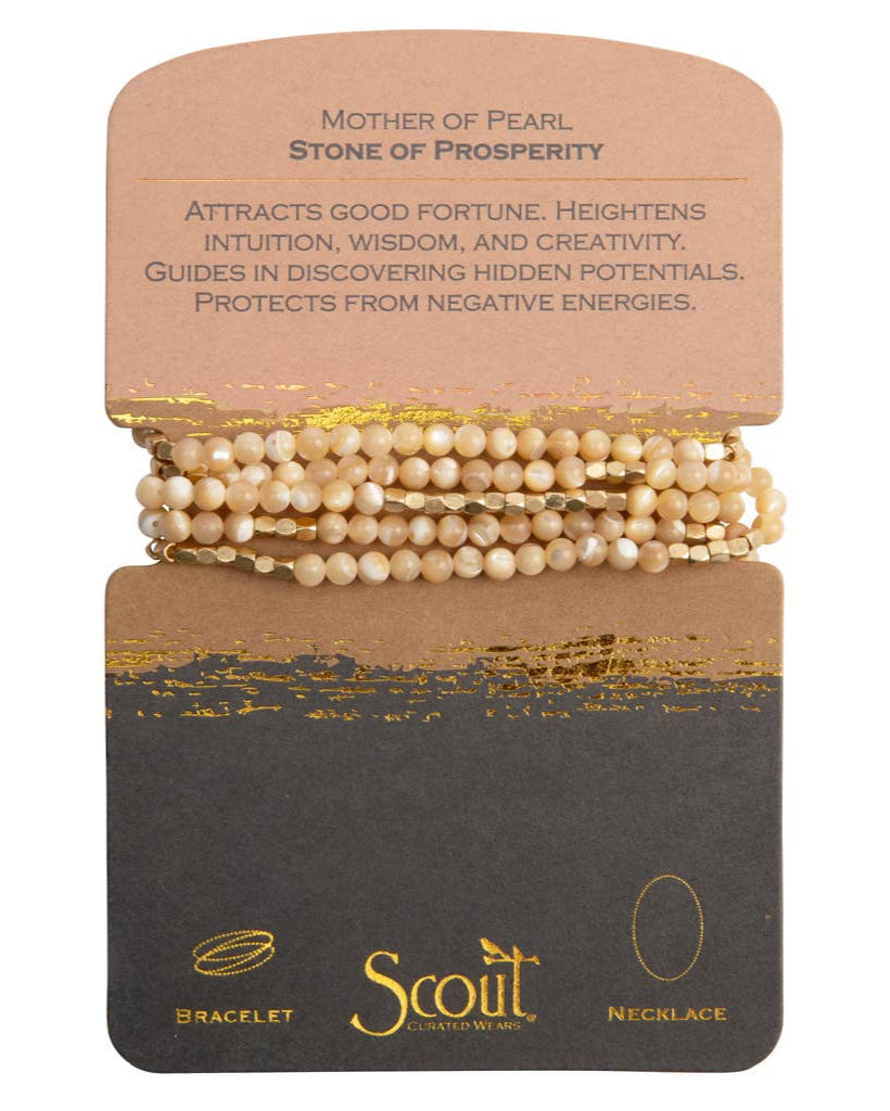 Embrace the natural energies of the earth with this versatile Gemstone Wrap Bracelet that effortlessly converts into a necklace. Adorned with 4.5mm semi-precious gemstone beads, each wrap provides a touch of earthy elegance to your wrist or neckline. Designed with flexibility in mind, it wraps comfortably 4-5 times around the wrist or 1-2 times as a necklace. The 34" length and stretch cord ensure a perfect fit. Each piece is presented on a card explaining the meaning of its stone—this one featuring Sodalite, known as the "Stone of Intuition," which promotes clarity, creativity, and a grounding effect for mind, body, and spirit.