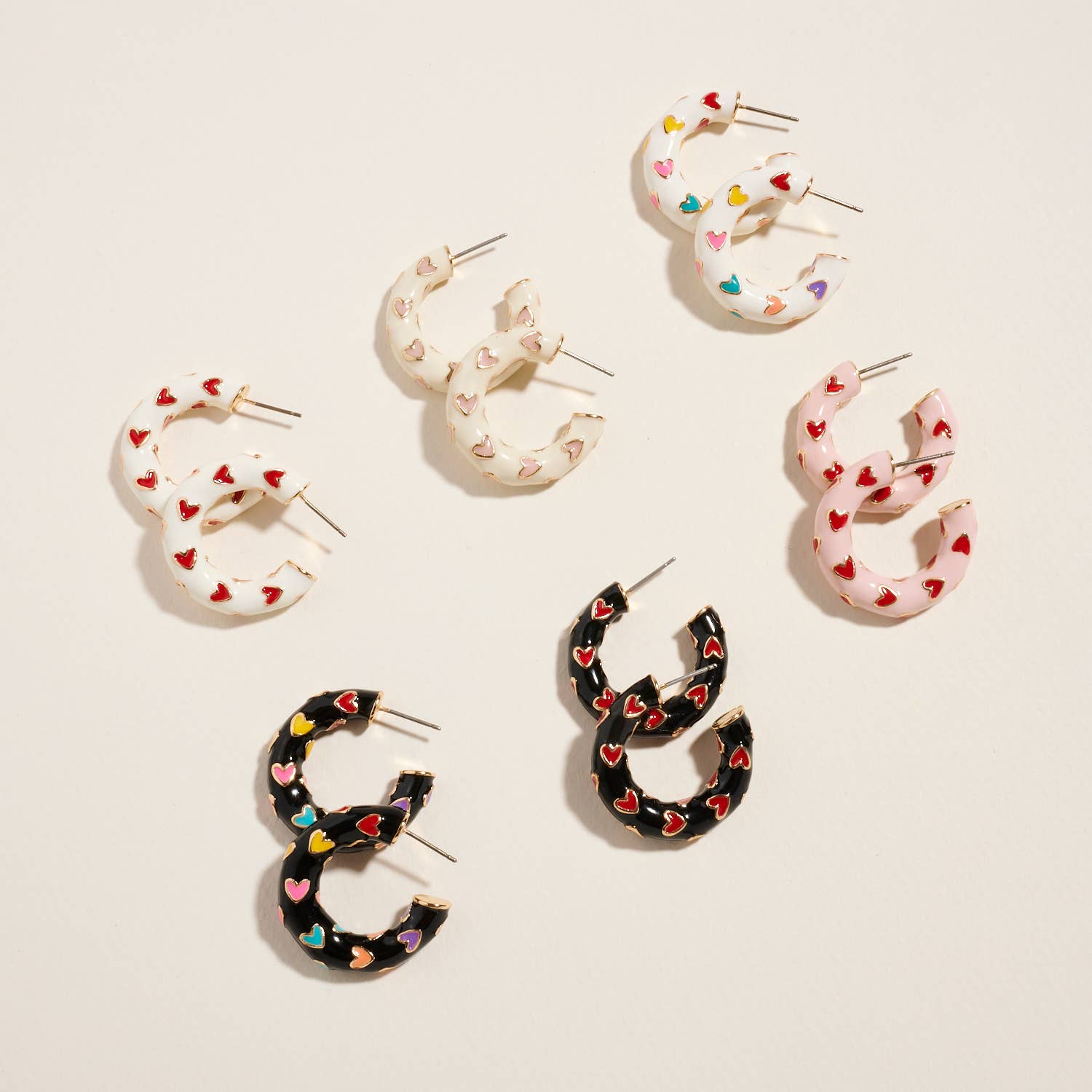 Clean and classic with a festive touch, these thick enamel hoops pair crisp white enamel with bold red hearts. The structured shape gives them a polished feel, making them perfect for elevating simple looks.