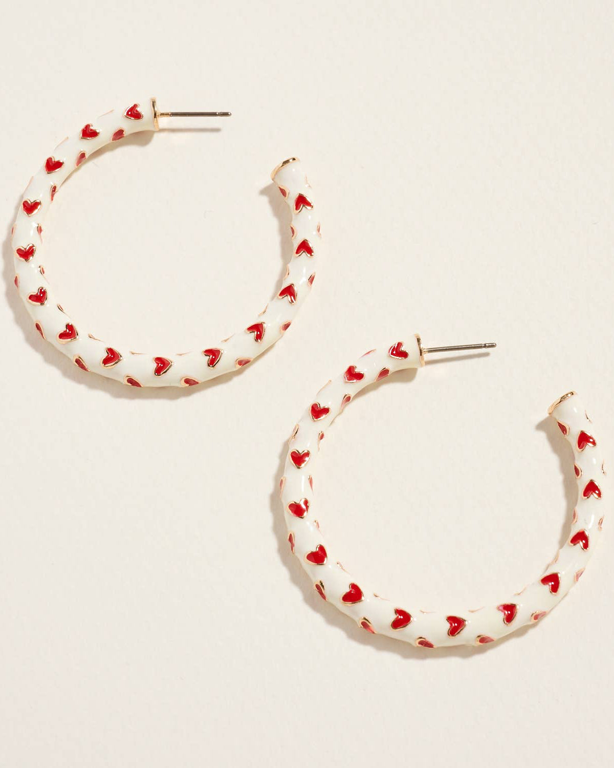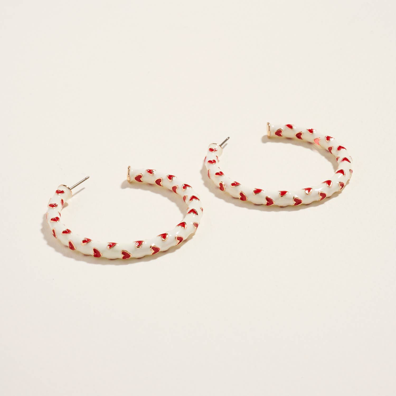 Soft ivory enamel paired with bold red hearts gives these hoops a refined yet festive feel. The balanced color palette makes them easy to style beyond Valentine’s Day, while the heart motif keeps them playful and eye-catching.