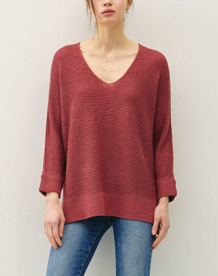 Easy, breezy, and rich in color—this slouchy wine-colored sweater has a laid-back charm. The dolman sleeves and roll cuffs create a relaxed shape that moves with you from day to night.
