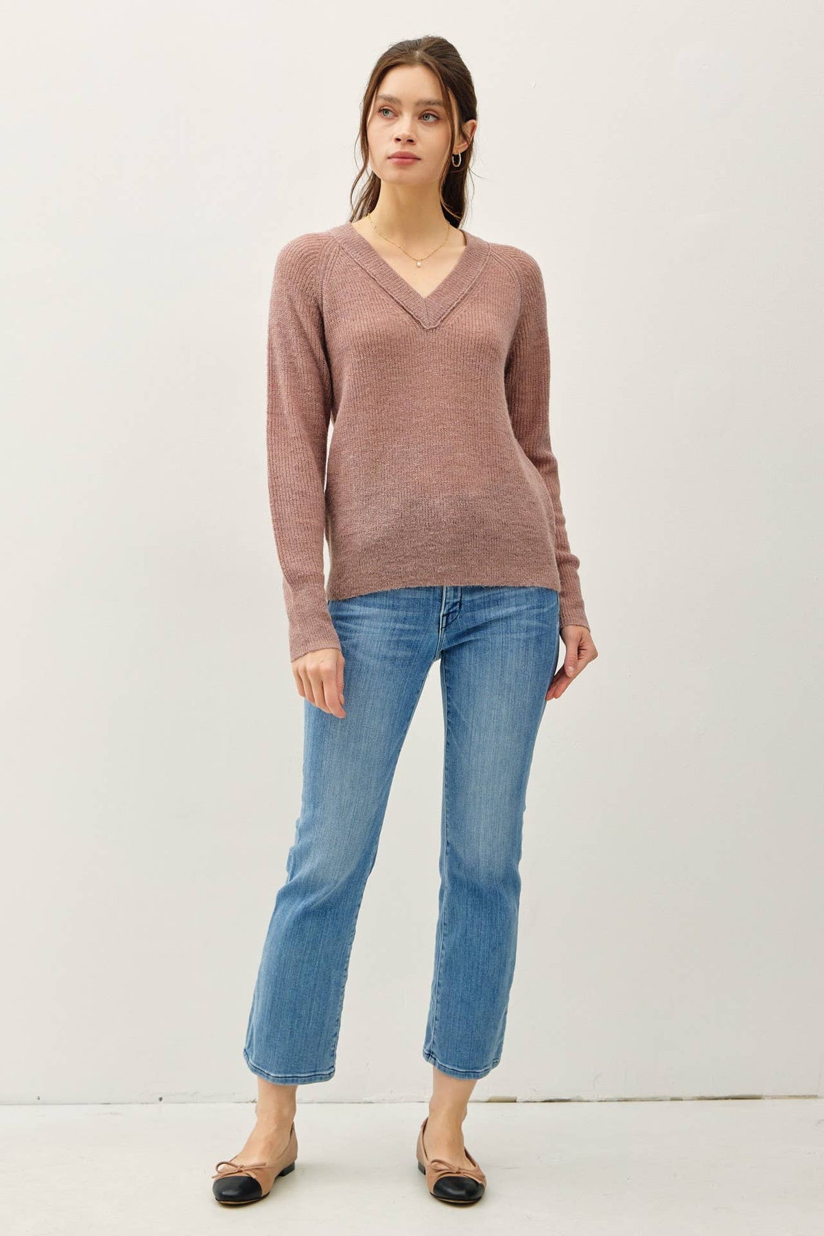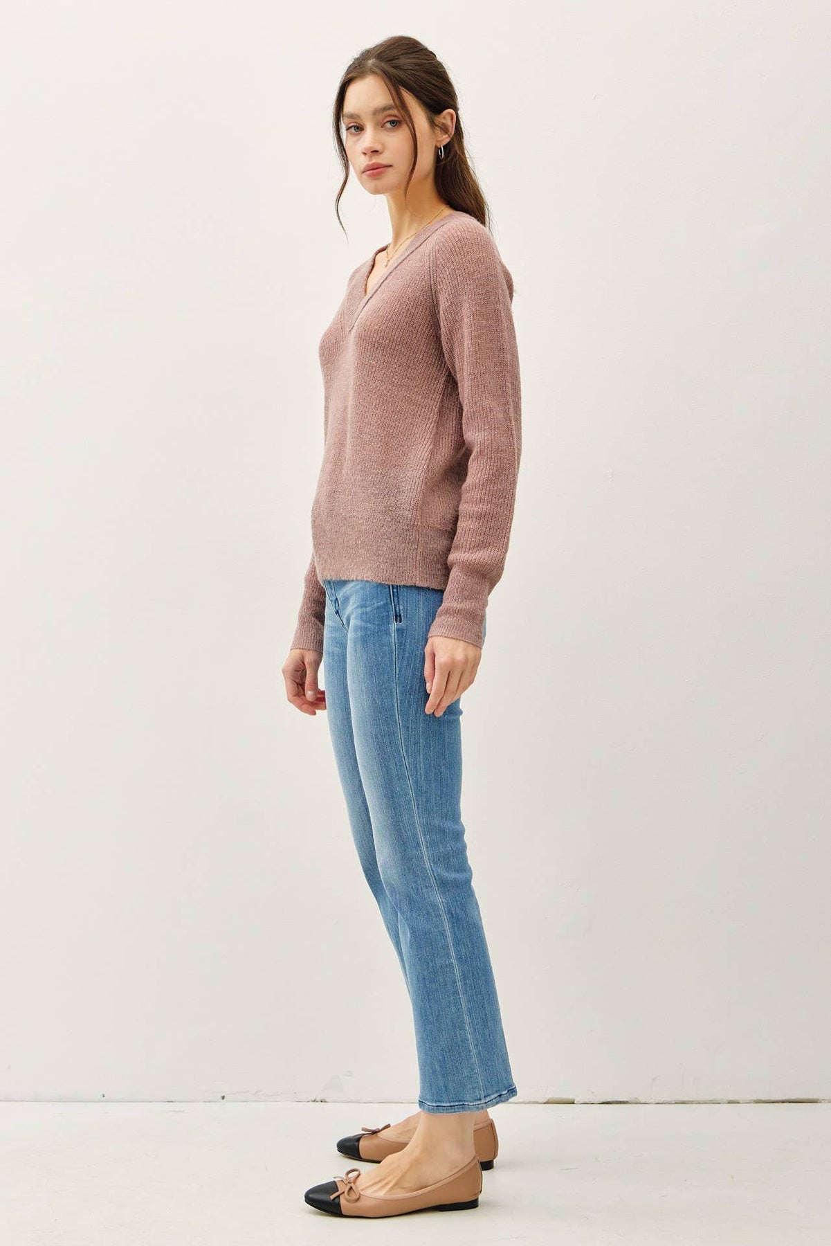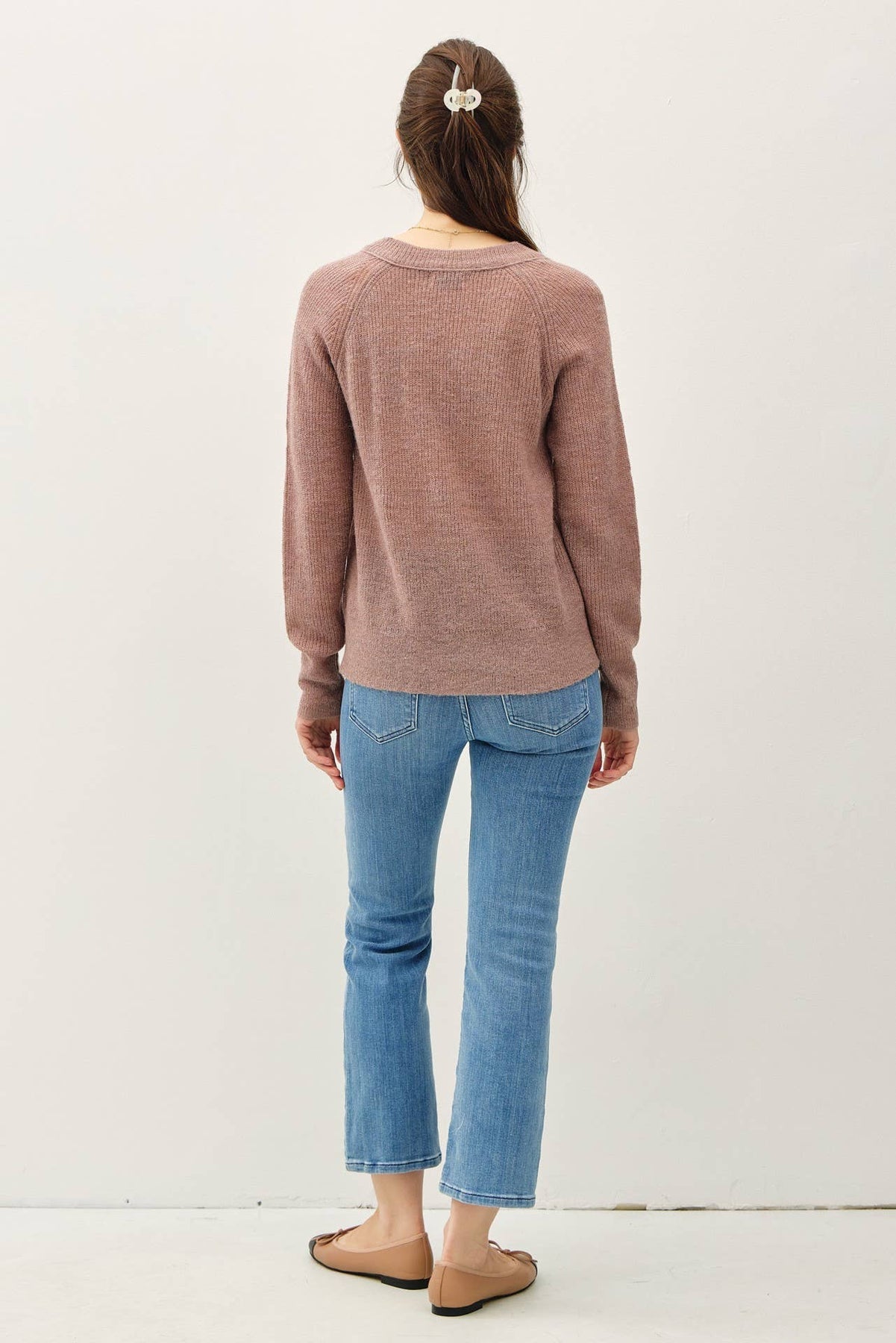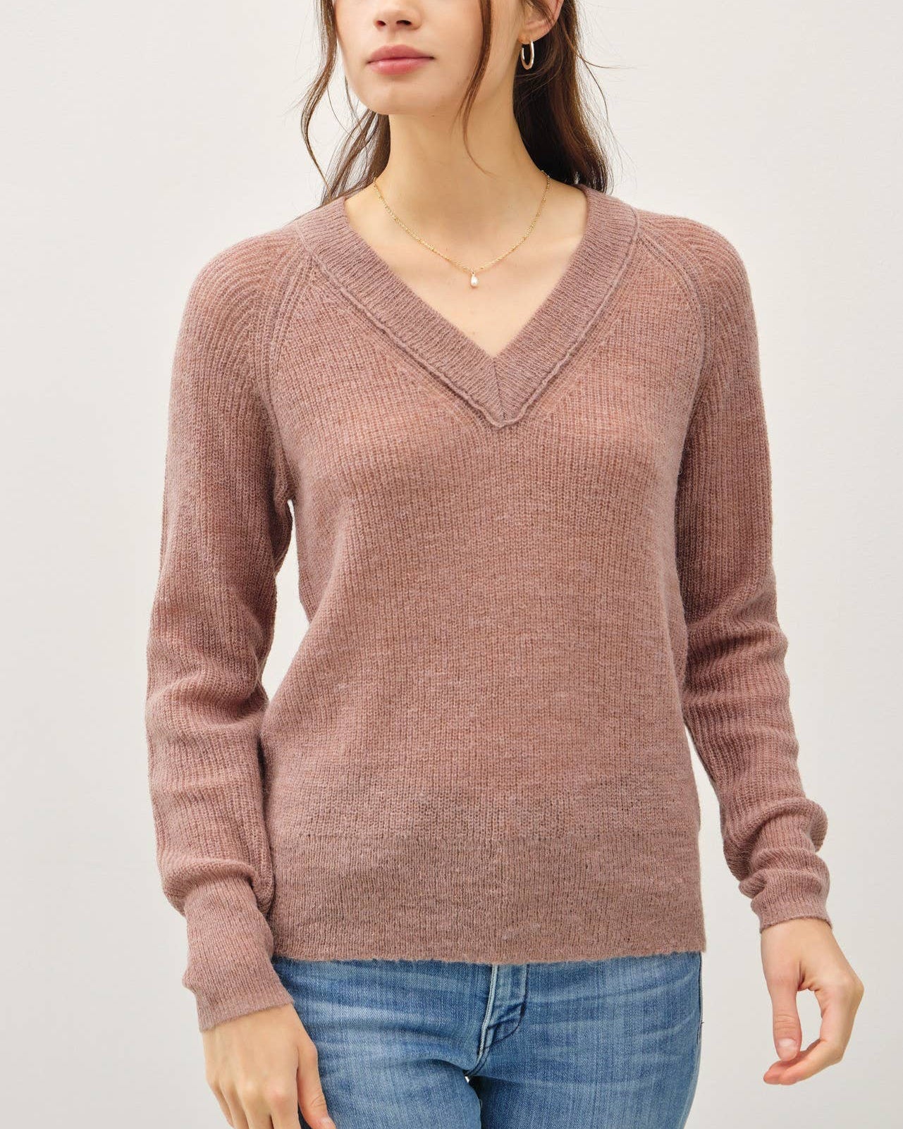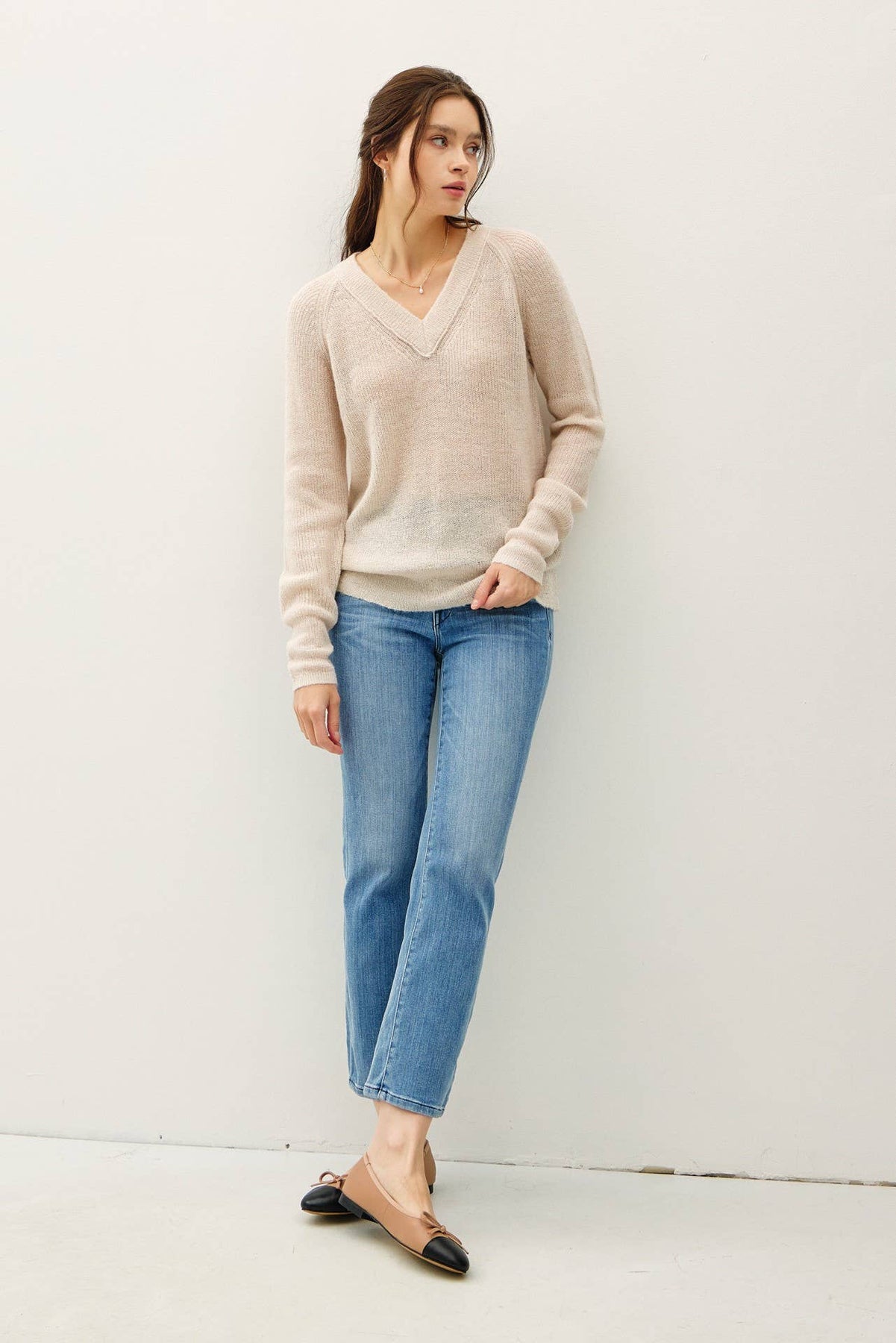 This lightweight sweater channels a touch of varsity flair with its soft wool blend, classic V-neck, and subtle shoulder detailing. It’s the perfect not-too-heavy layer for everyday ease and a little timeless charm.