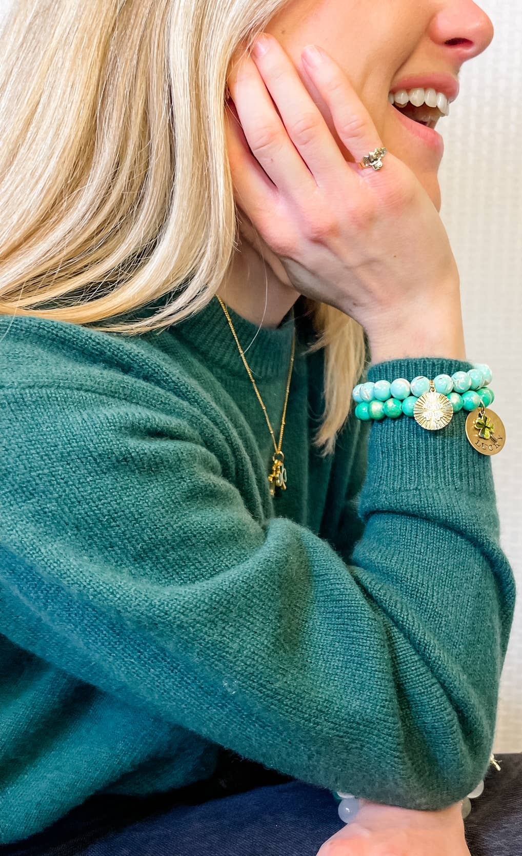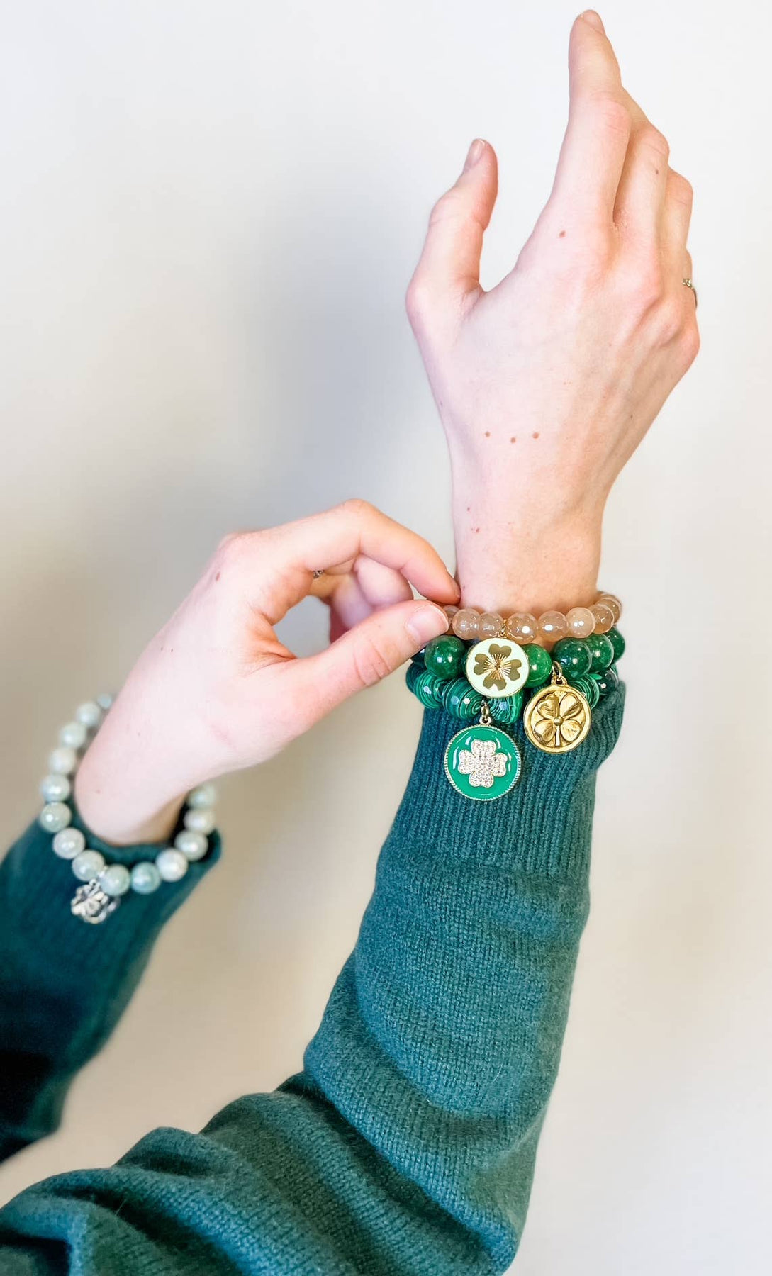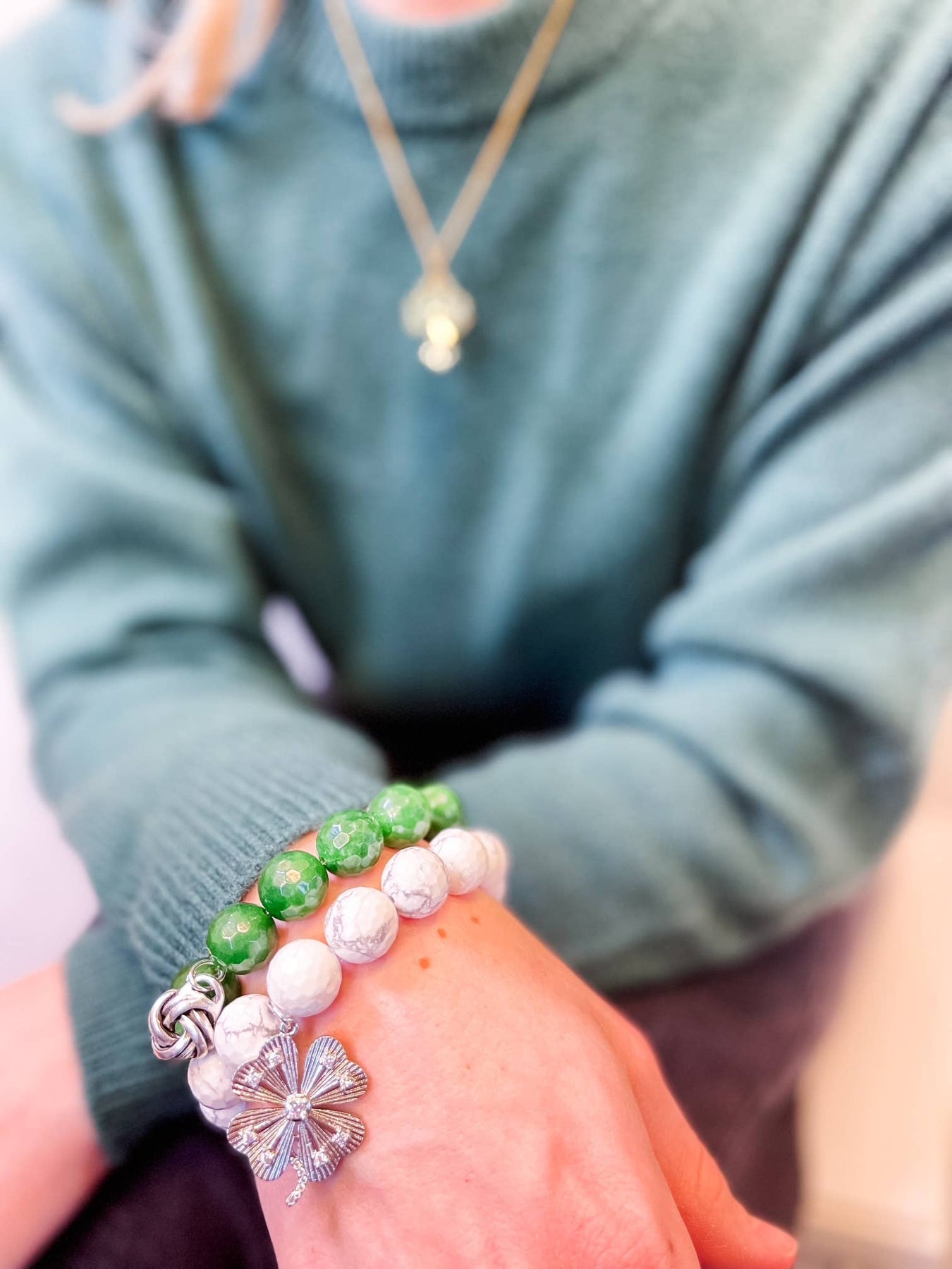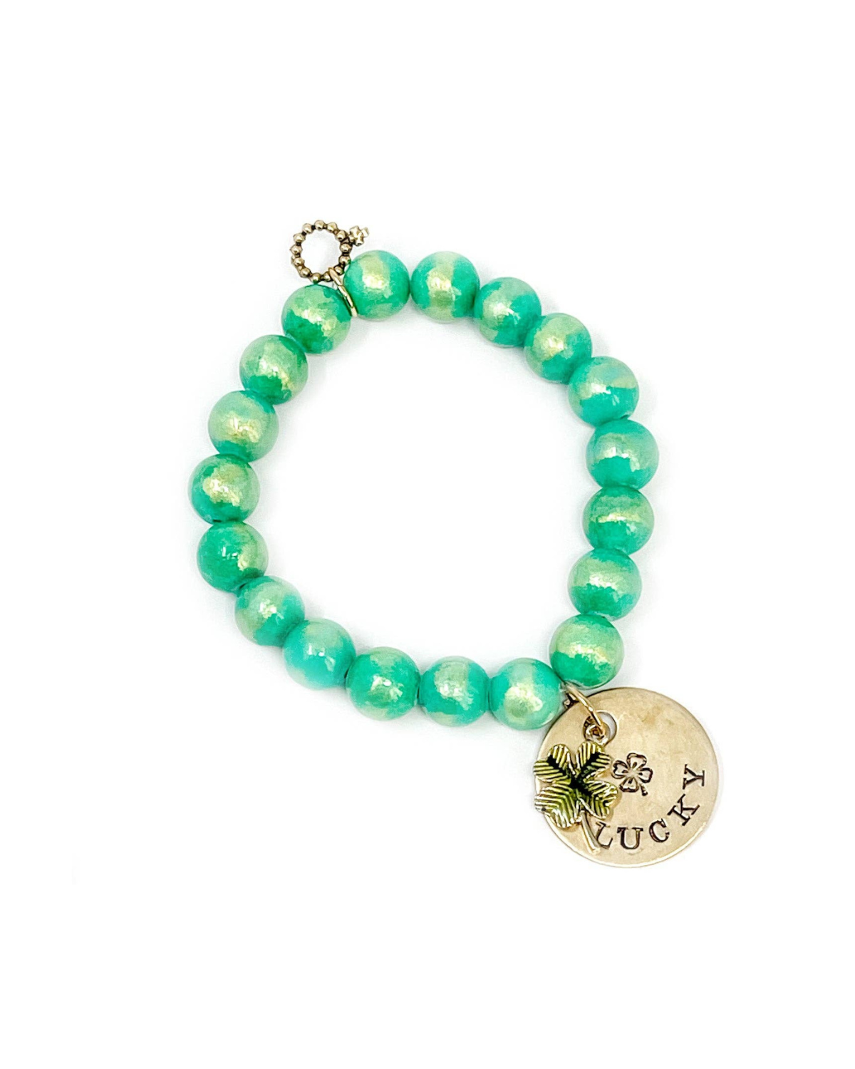 Embrace luck and positivity with this stunning Angel Kiss Agate bracelet featuring a lucky pendant and shamrock charm. The vibrant preppy green hues make it a standout accessory, perfect for everyday wear or special occasions.
