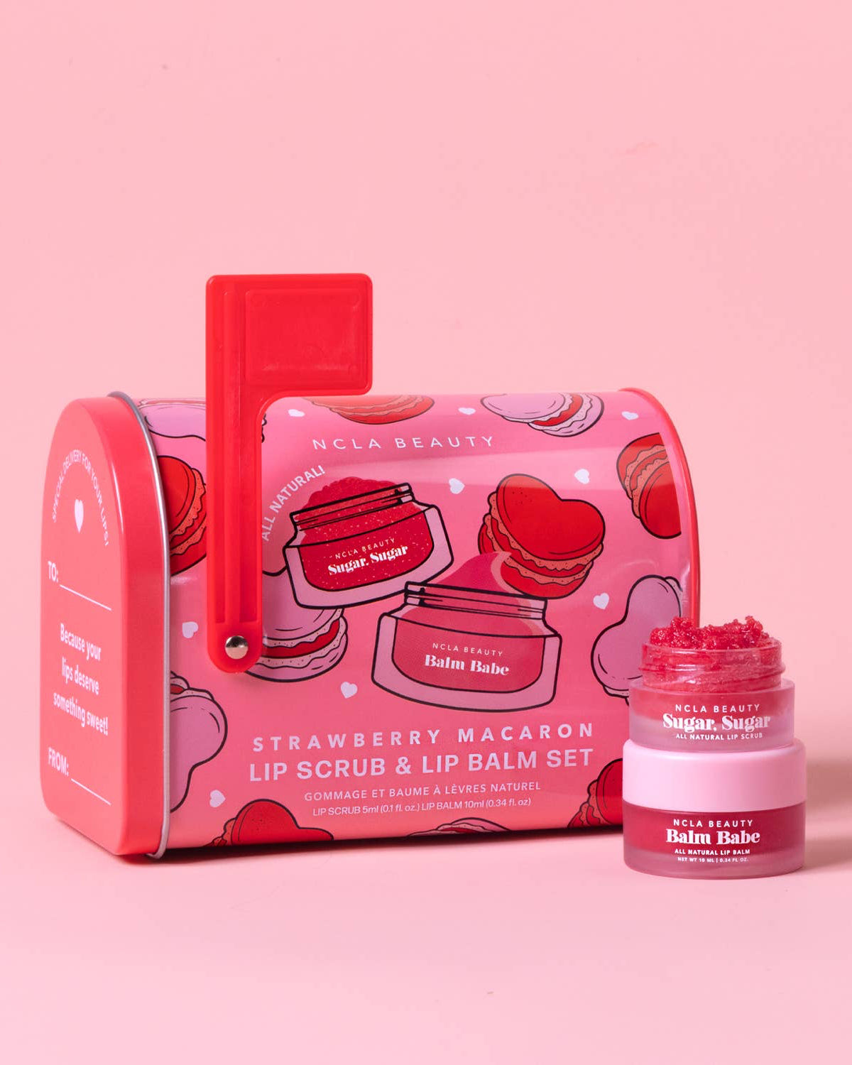 Sweet lips start here. The Strawberry Macaron Lip Care Set is the ultimate Valentine’s Day or Galentine’s Day treat, featuring a gentle sugar lip scrub followed by a nourishing balm that seals in softness. Berry-sweet and irresistibly smooth, this duo keeps lips kiss-ready and perfectly pampered — all wrapped up in the cutest reusable mailbox-shaped tin.