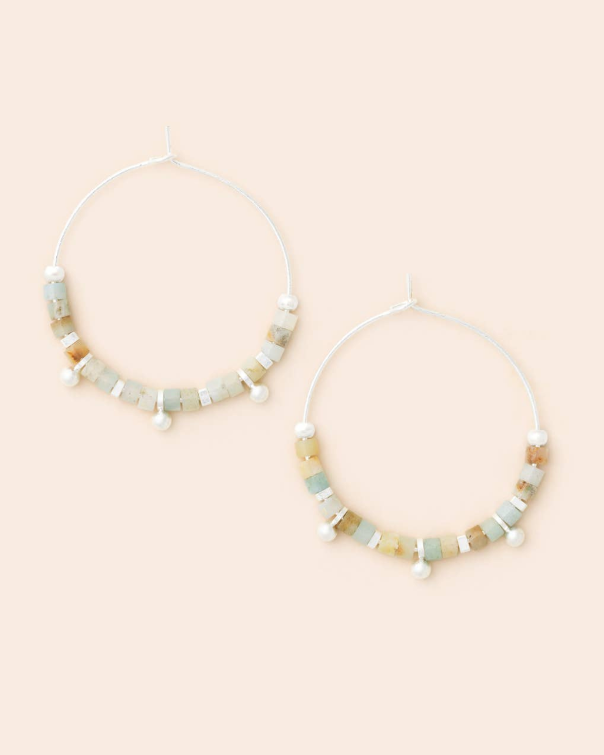 Add a dose of courage and calm. Featuring serene Amazonite—the Stone of Courage—these silver hoops are a refreshing choice with soft color and clean design.