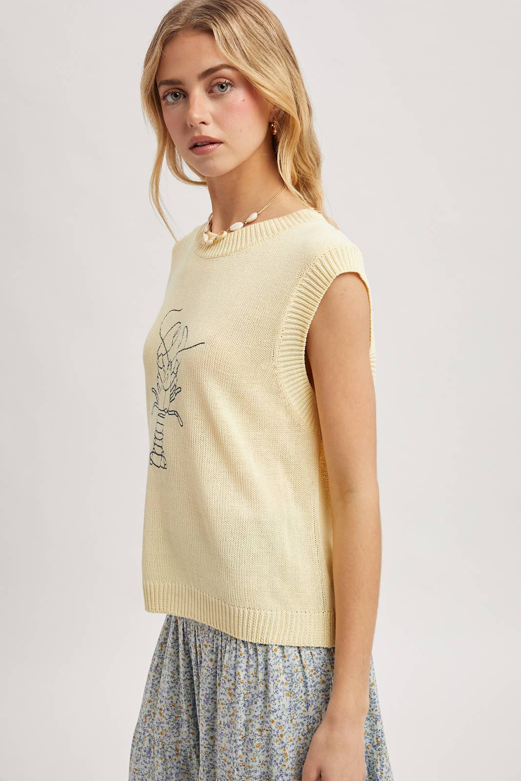 A fresh take on a customer favorite, this butter-and-navy version of the Madison Vest brings the same coastal charm in a softer, sun-washed palette. Easy, playful, and endlessly wearable.
