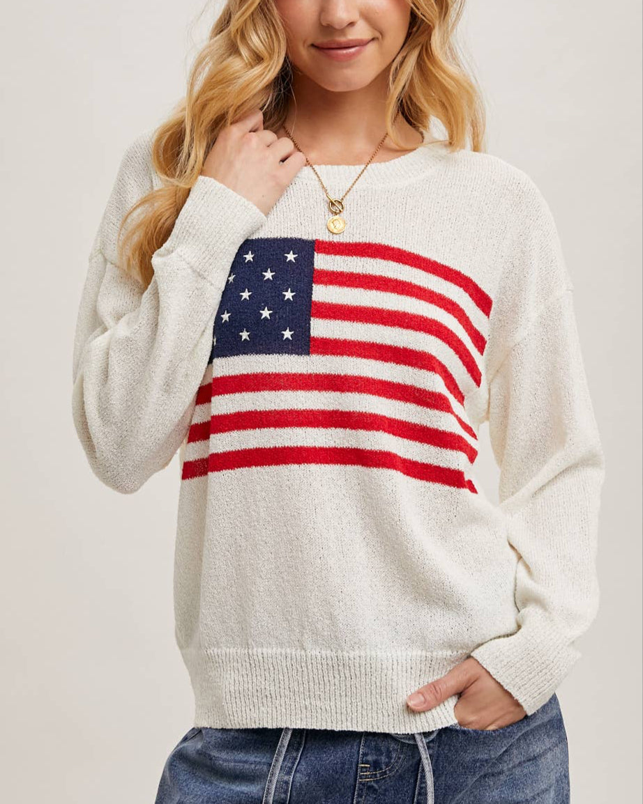 American Flag Knit Sweater - Ivory