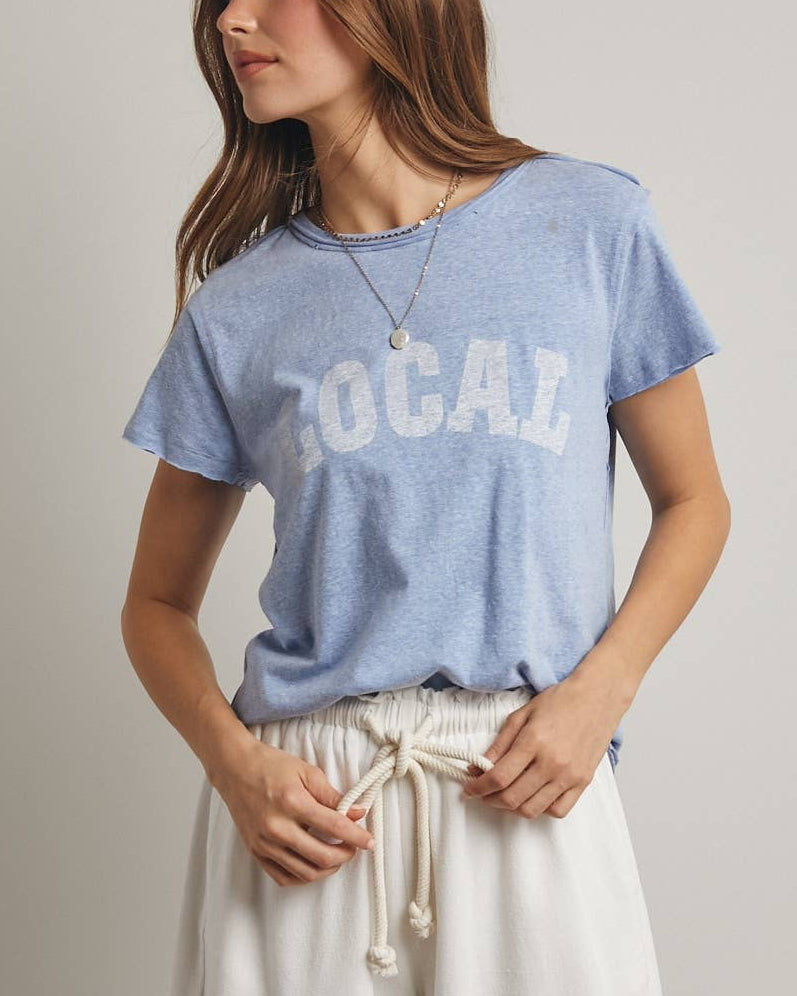 An easygoing classic with hometown pride woven right in. This soft heather tee features bold “LOCAL” lettering and a relaxed, everyday fit that feels just right from morning errands to sunset strolls. Lightweight and endlessly wearable, it’s the kind of tee you’ll reach for on repeat.