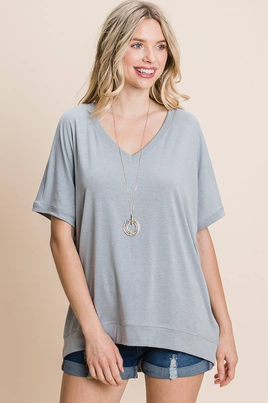 The ultimate wear-anywhere piece, this relaxed V-neck top features dolman sleeves and a high-low hem for a flattering, laid-back silhouette. The soft knit blend makes it a comfortable staple for every season.
